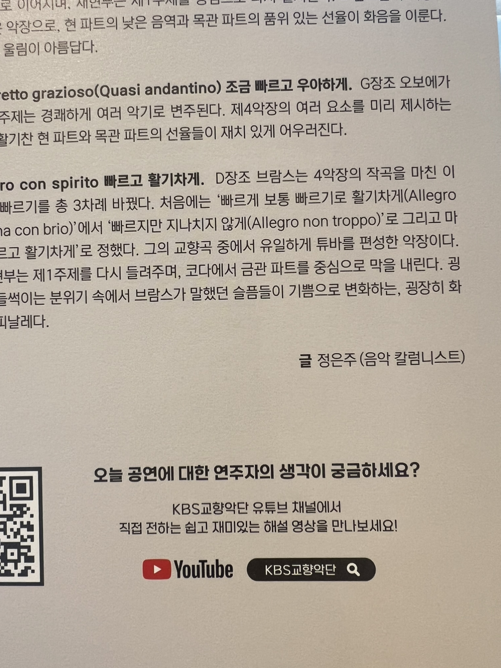 정말 행복했던 시간이었습니다. KBS교향악단 제805회 정기 연주회에 다녀왔지요. 제가 프로그램 북을 쓴 공연은 웬만하면 꼭 가보곤 하는데요.