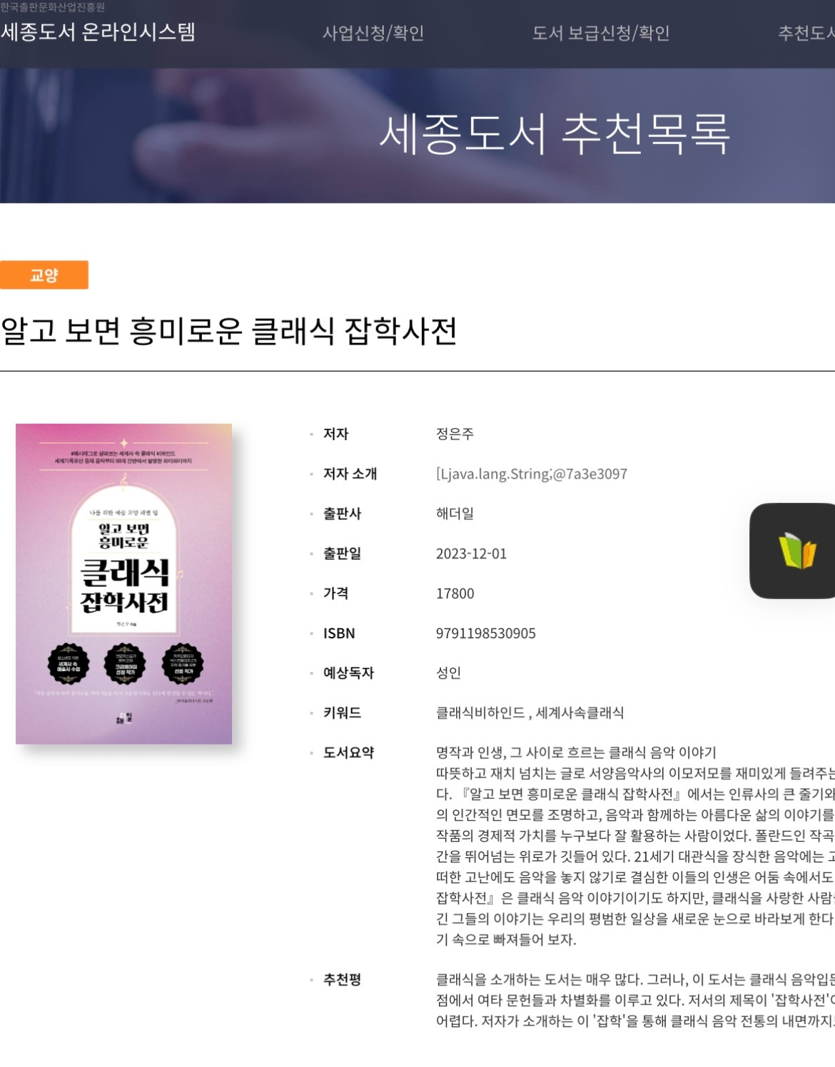 제 책 <알고 보면 흥미로운 클래식 잡학사전>이