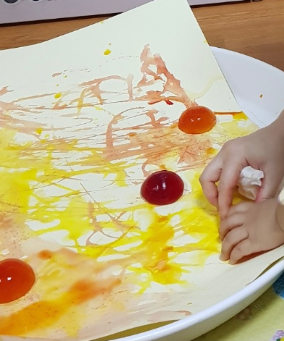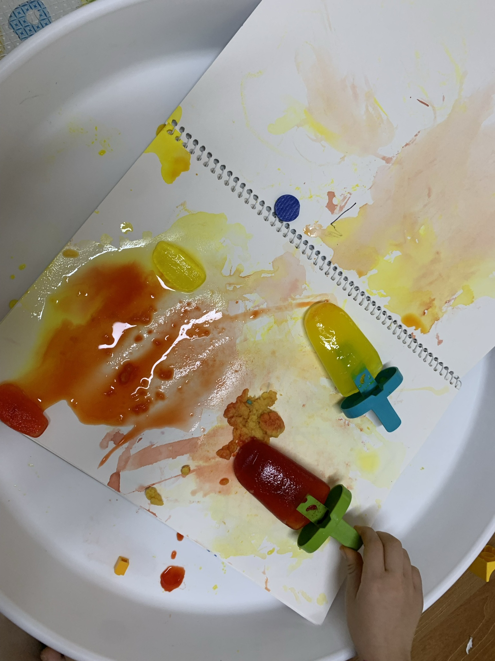 아이들과 물감, 식용색소를 가지고 아이스크림바를