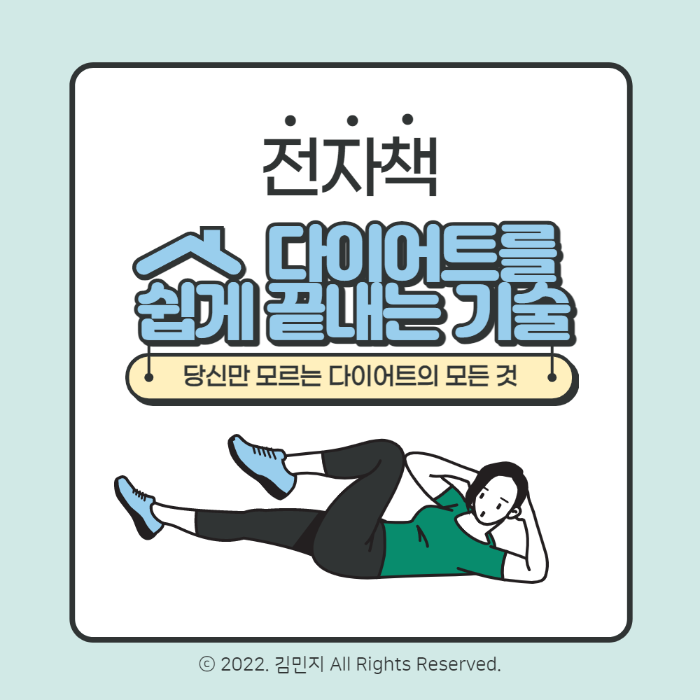 전자책을 활용해서 내 일상에서, 내가 가장 쉽게 시작할 수 있는 방법으로, 건강한 다이어트에 도전해보시고요! 다이어트를 통해 더 건강하고, 행복하고, 아름다운 자신만의 변화를 경험하길 응원하겠습니다!