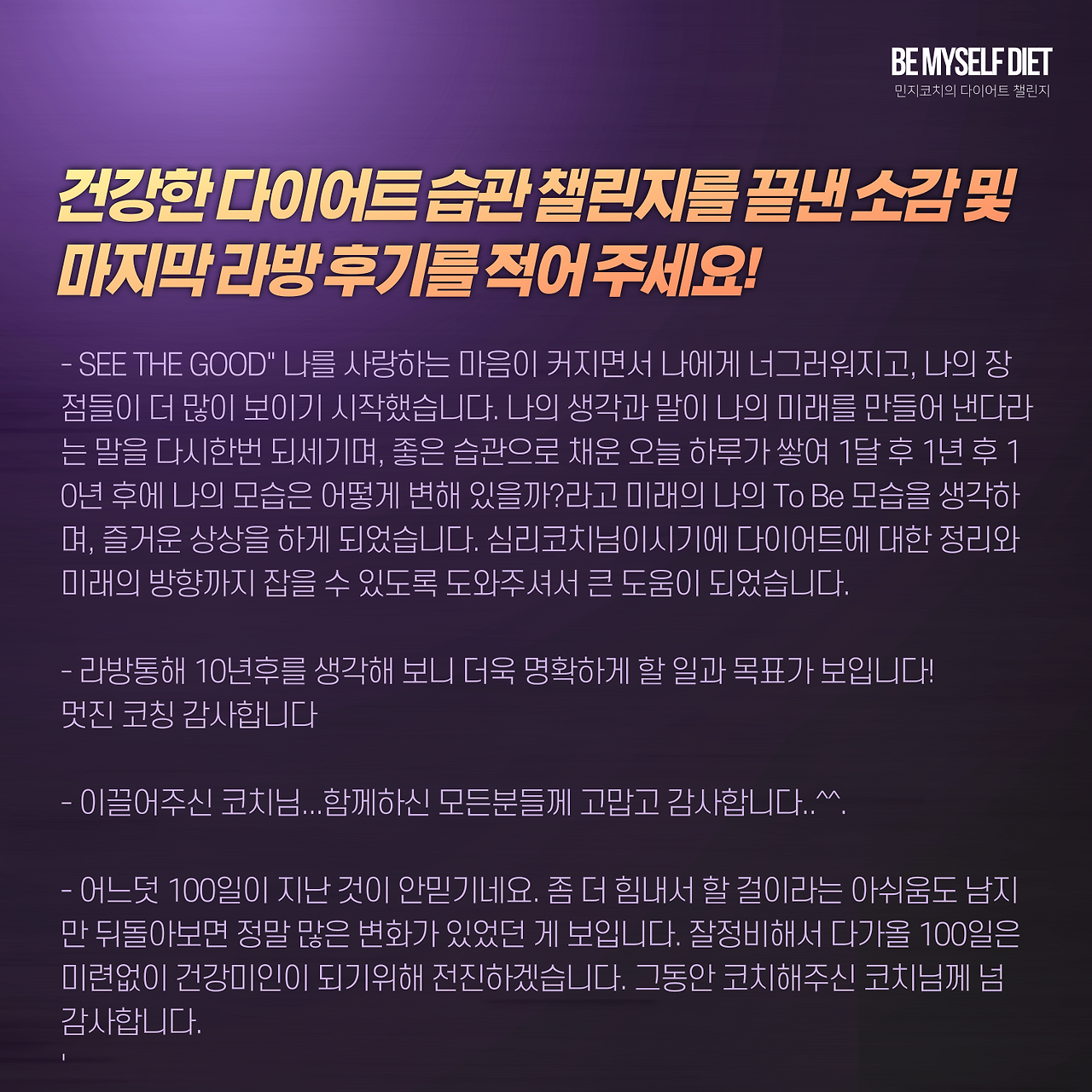 Step 2. 100일 다이어트 챌린지에 함께 참여해요! (코칭 후, 무료 참여 가능!)