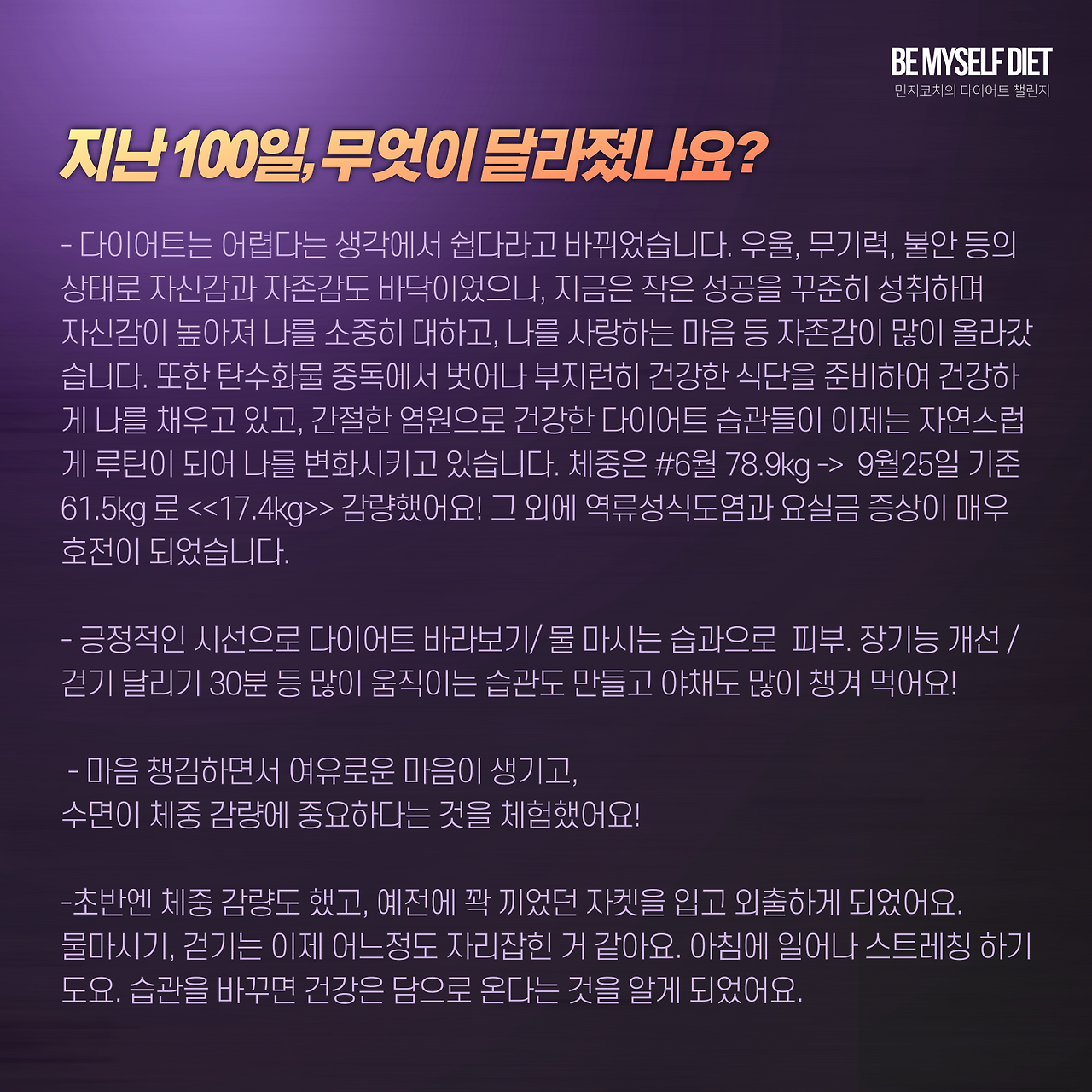 안녕하세요. 어제 새벽에는 그동안 100일간 이어 왔던 건강다이어트 챌린지를 마치며, 좋아하는 차를 한잔 ...