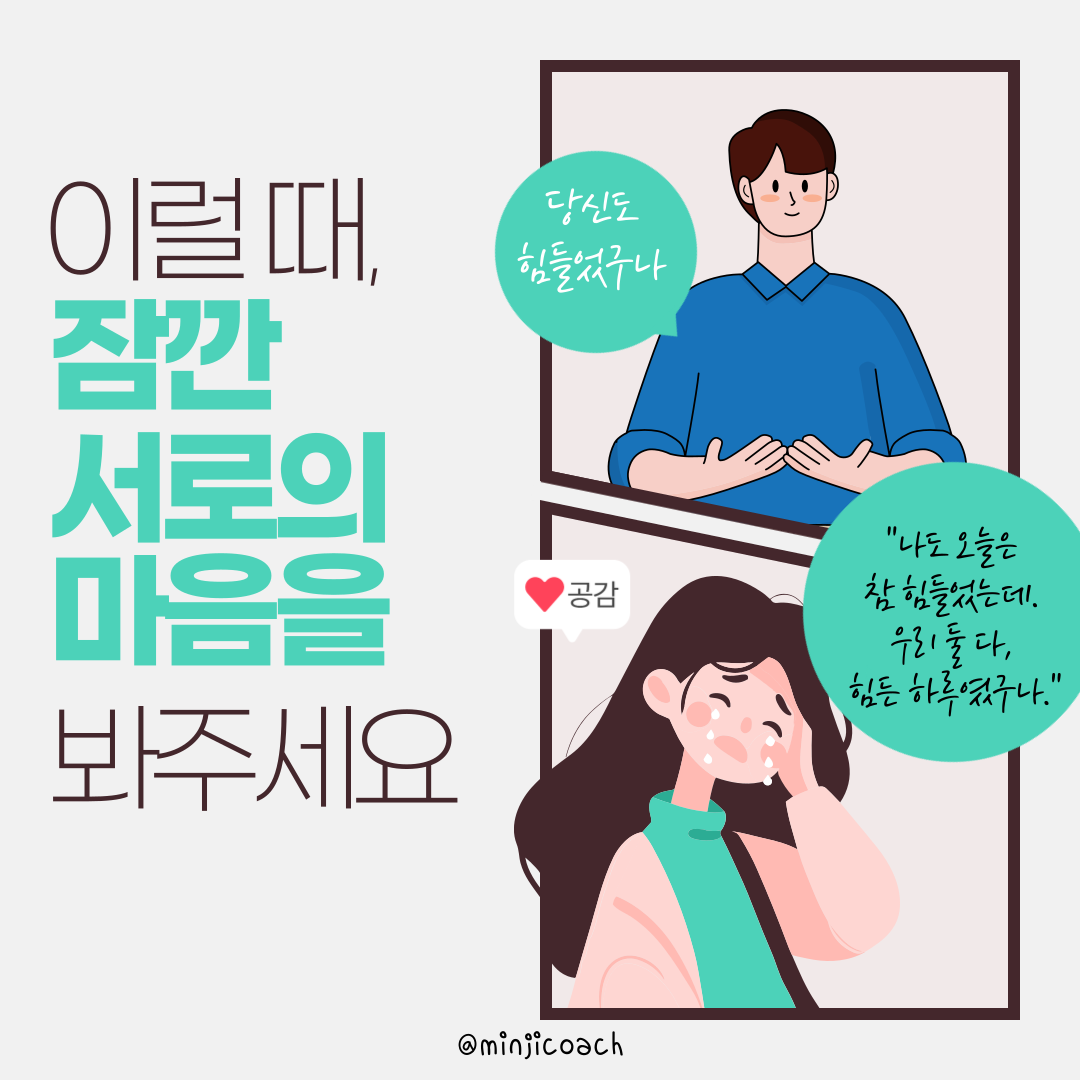 충분히 공감받은 상대방은 나에게도 같은 공감과 위로를 건넬 힘이 생길 거예요.