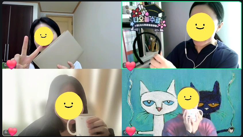 어떤 글방의 수료식에는 상장도 꽃다발도 없었다. 대신 ‘회의 나가기’ 버튼만 있었다. 두 손을 씩씩하게 흔드는 네모 칸이 하나씩 사라졌다. 이상하게 그 순간이 제일 든든했다. 헤어졌지만 새로운 출발 같았다. 더 좋은 글을 쓰기 위해 더 좋은 걸 채우러 나가는 길이었다.