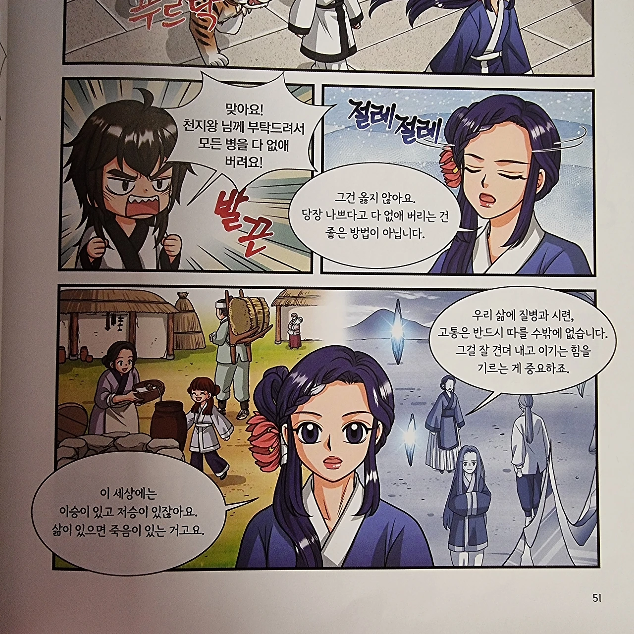 책에서 삼심 할망은 이렇게 말했다. 세상에 이승과 저승이 있듯, 삶이 있으면 죽음이 있는 거라고. 삶에는 질병, 시련, 고통이 반드시 따라오고, 그걸 견뎌내는 힘이 필요하다고. 한 번 이겨내면 다음 싸움에서 쓸 힘이 생긴다고. 그래서 마마신(질병의 신)이 존재한다고.