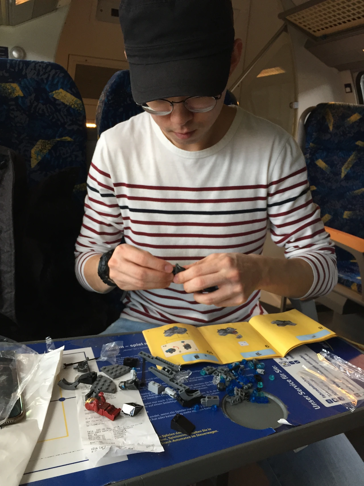 "오 나도 함부르크 가는데. 나 공항에서 길 잃어버릴까 봐 그러는데.. 나 챙겨줘야 해"