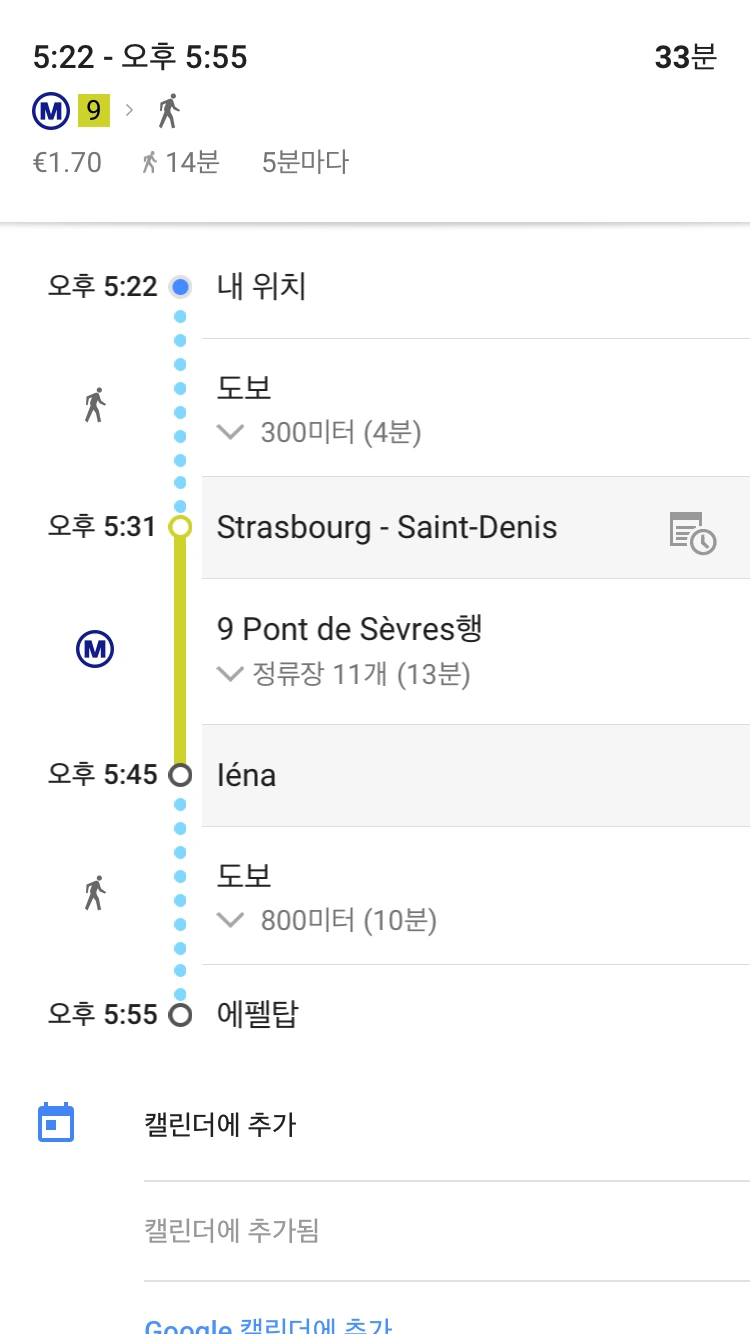 구글맵으로 에펠탑을 검색하고 동선을 확인 후에 움직였다.