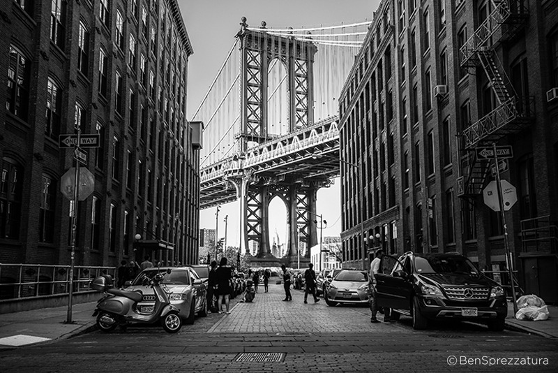 노을이 질 무렵까지 아내와 난 덤보를 걸었다. 노을 지는 순간의 스토리를 담고 싶은 마음이었다. 동시에 무엇을 찍어야 하는가에 대한 스스로의 답을 구하지 못했던 까닭이기도 했다. 그렇게 다시 돌아온 이 곳은 오후 일곱 시경이었고 맨해튼으로부터 노을이 지고 있었다. 순간 어떠한 집에 문이 열렸고, 주인으로 보이는 남자가 걸어나왔다. 순간적으로 이 말도 안 되게 멋진 장소에 살고 있는 남자에게로 시선을 던졌다. 그리곤 셔터를 눌렀다. 바로 우측에 벤츠 SUV를 타는 저 사람에게 말이다. 그리곤 그에게로 발걸음을 옮겼고, 우리는 짧은 대화를 나누었다. 그는 이 소란스러움에 익숙한 듯 머쓱해하며 나의 질문에 담대하게 답했다. 그의 어조에는 네거티브함이 다소 담겨 있었지만, 그의 태도는 쿨하고 유머러스했다.