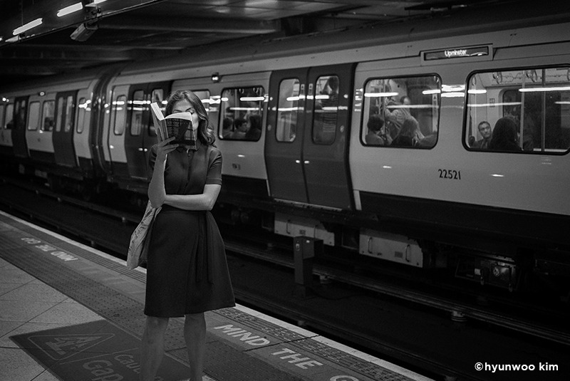 나는 라이카 모로크롬을 든 채로 런던의 거리를 거닐고 있었다. 언더그라운드는 여전히 공사 중이었고, 날씨는 오락가락했다. 특별할 거 하나도 없는 9월의 어느 초가을이었다. 나는 바비칸센터를 가기 위해 지하철을 타야 했다. 웨스트민스터 언더그라운드를 내려가던 중, 플랫폼에 서 있는 한 명의 여자에게 시선이 빼앗겼다. 다림질이 잘 되어 보이는 코튼 소재의 녹색 원피스를 입은 여자는 한 손으로 책을 접어들고 그녀의 코 앞까지 책을 가져다 대고 있었다. 여자는 책을 읽고 있었던 것이다. 갑자기 어디선가 내 친구의 목소리가 들려왔다.
