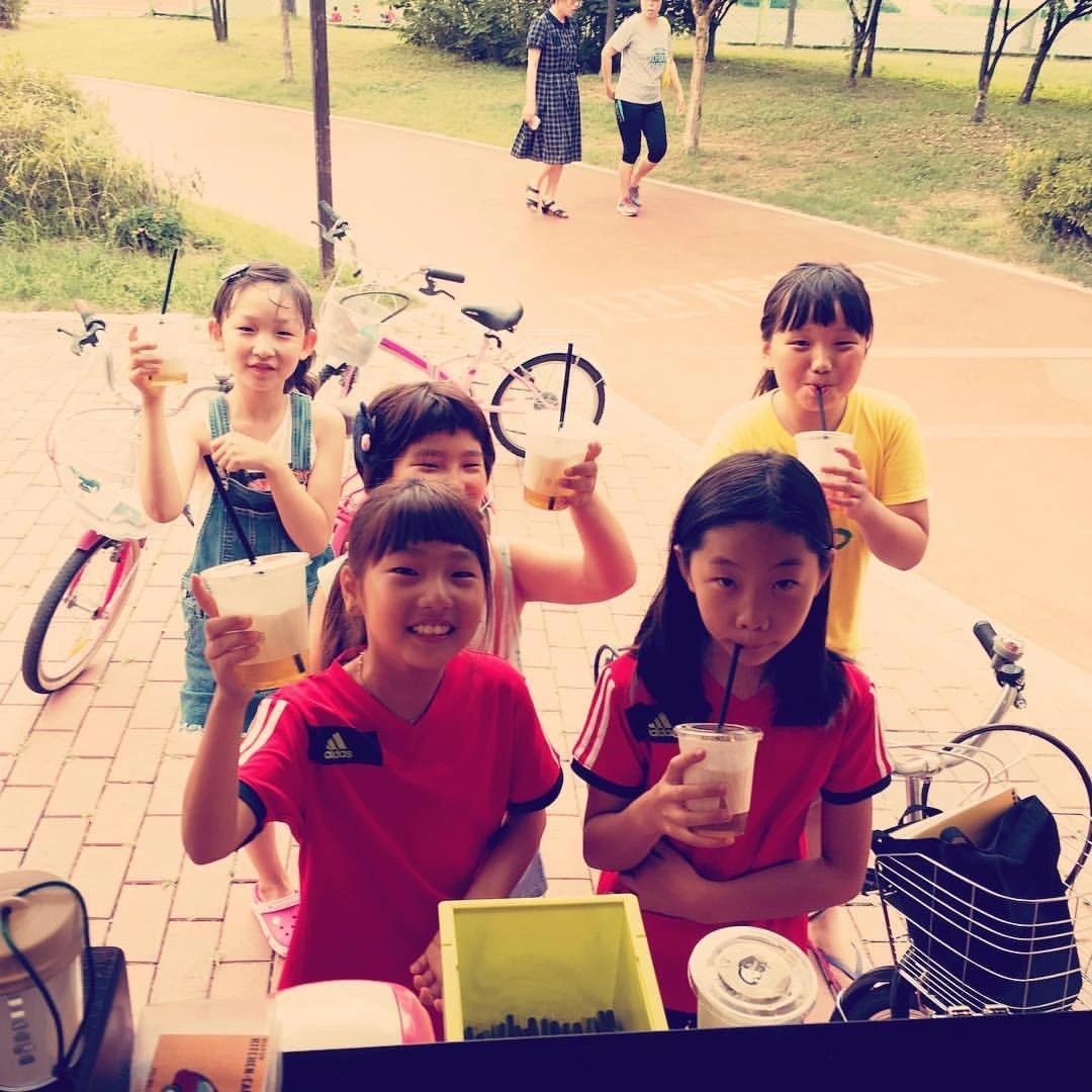 오전 시간이 훌쩍 지나 중천에 떠 있던 해가 기울기 시작할 즈음, 초등학생 여자 아이들 다섯 명이 트럭 앞을 왔다 갔다 하며 맴돌았다. 곁눈질로 힐끗 메뉴판을 보는 모습이 아무래도 사 먹고 싶은데 돈이 부족한 듯 한 모양이었다. 선뜻 다가오지 못하고 멀찍이서 자기들끼리 수군 거리는 모습이 귀여워서 내가 먼저 말을 건넸다.