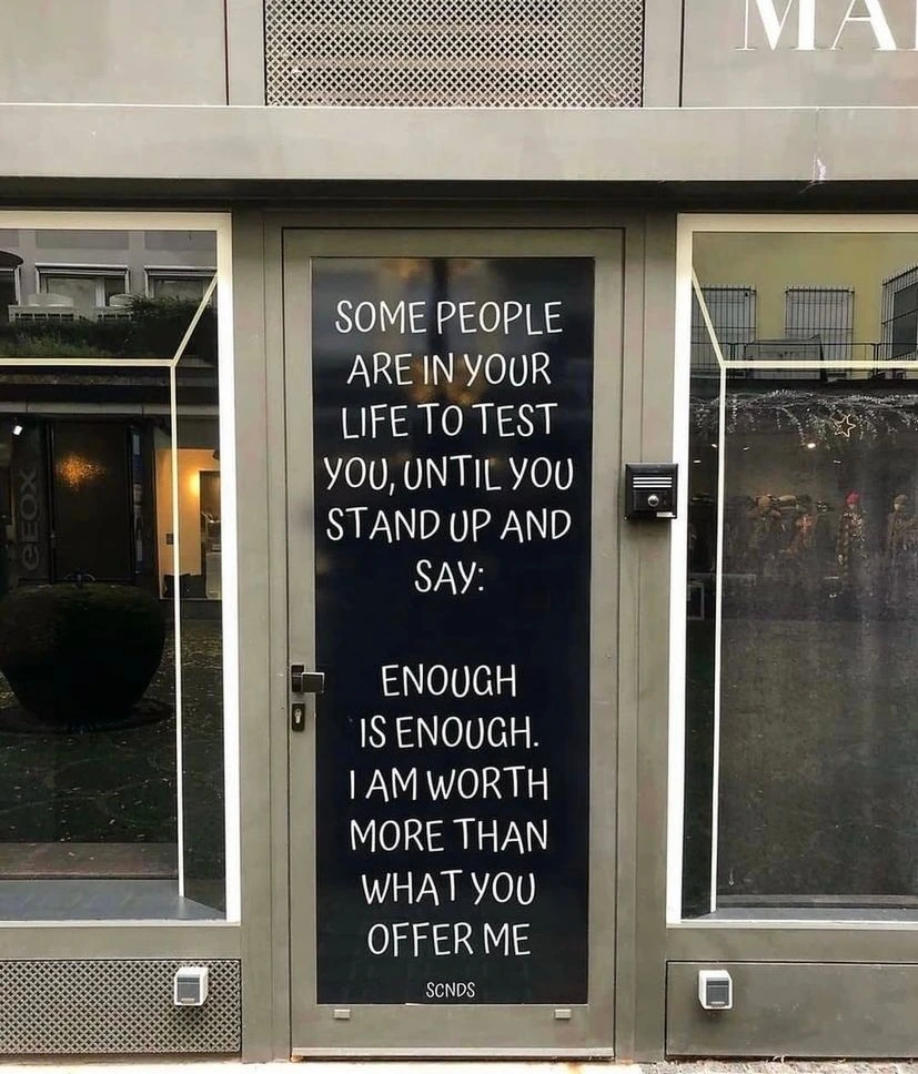 “Some people are in your life to test you, until you stand up and say: Enough is Enough. I am worth more than what you offer me.”