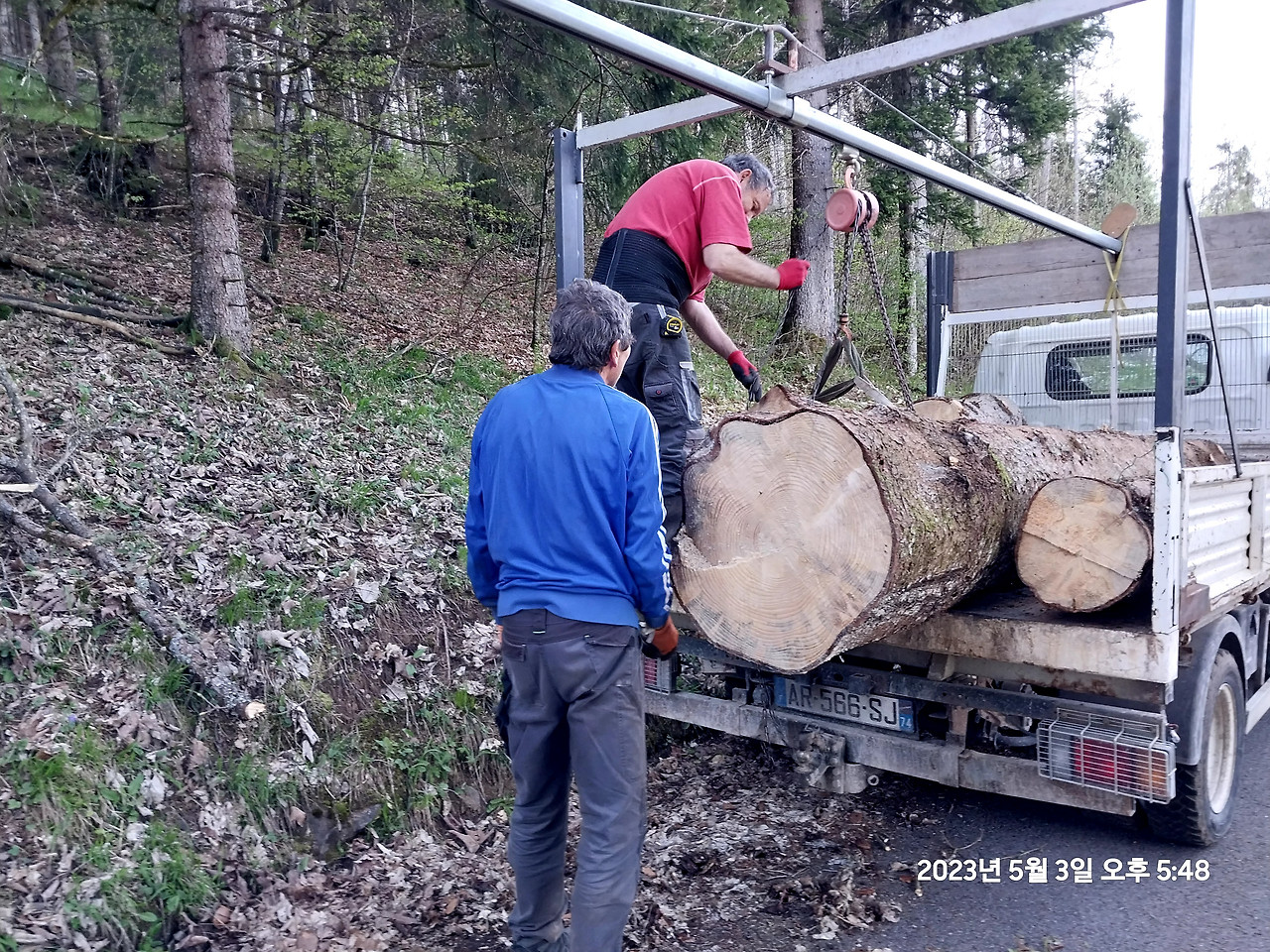 <목재로 쓸 나무를 직접 베어 싣는 형제 쟝과 죠르쥬>