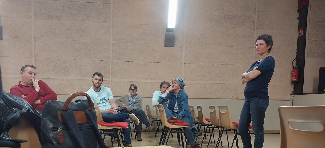 <동네 사람들이 모여서, 지역의 생태환경 변화에 관한 다큐멘터리를 관람하고 밤늦게까지 토론했다.>