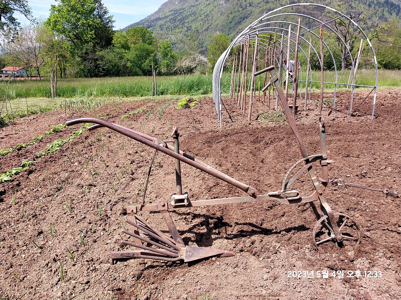 <죠르주가 쓰는 프랑스 쟁기, 나는 가볍고 간편한 우리나라 쟁기가 훨씬 더 좋다고 생각한다.>