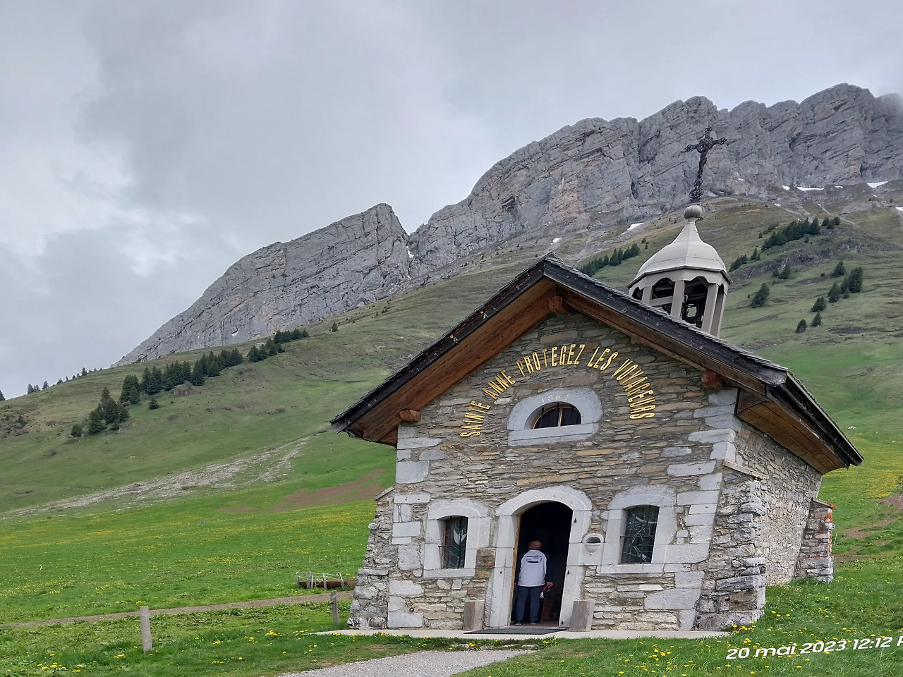 동네 뒤에 있는 기도실. 눈사태로 파손된 것을 앙드레와 동네주민들이 1988년에 다시 세웠다. 저녁 산책 때 앉아 있다 오곤 했다.