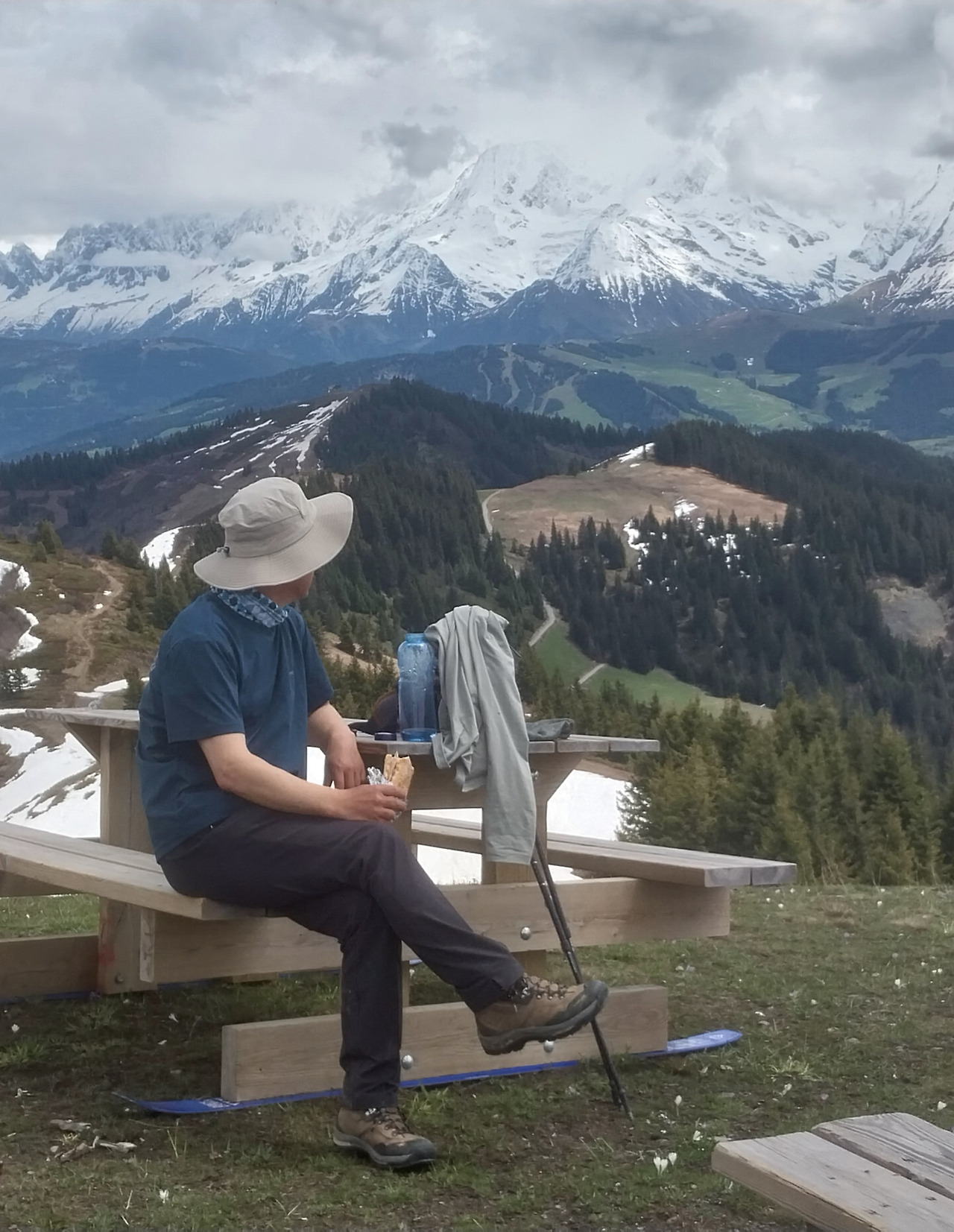 오전 일이 끝나면 나는 동네를 산책하거나 주변의 산을 올랐다. 알프스 한가운데 있는 마을인지라 사방이 산이었고, 사방이 등산로였으며 사방이 그림이었다. 아라비 재(Col des Aravis)를 세 번 올랐고, Tete du Toraz(1,930m)를 두 번 올랐으며, Croisse Baulet(2,236m)를 한 번 올랐다. 눈 덮인 산에서 건너다 보이는 몽블랑 체인과 아라비 체인의 산들은 꿈속의 풍경처럼 아름다운 파노라마였다. 지금 내가 인생의 가장 행복한 순간을 보내고 있는 중이라는 생각을 여러 번 했다. 복부비만이 사라지고 근력이 길러지다 보니 내가 오를 수 있는 고도가 점점 높아졌다. 몸이 건강해지니 마음도 함께 풍요로워졌다.