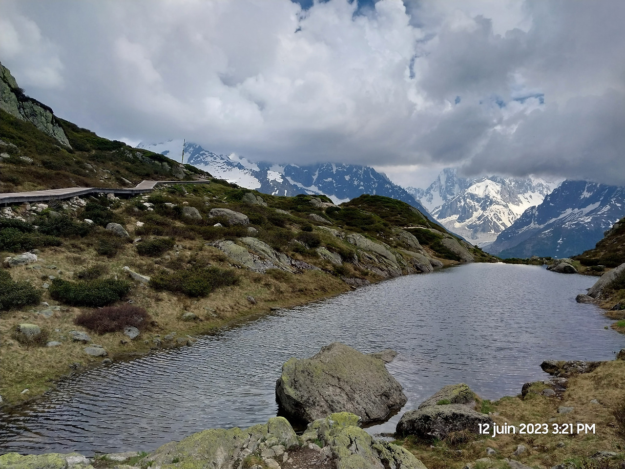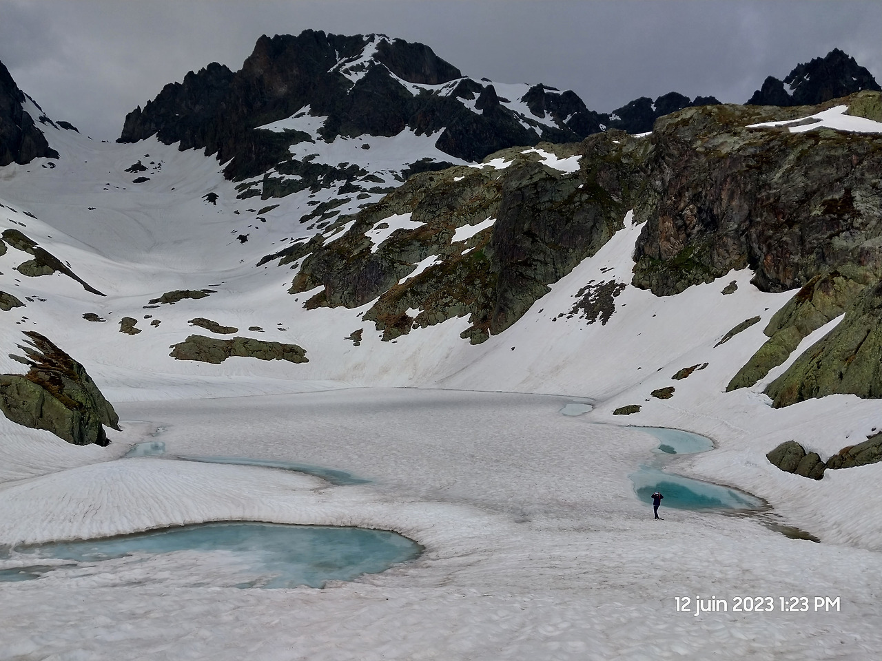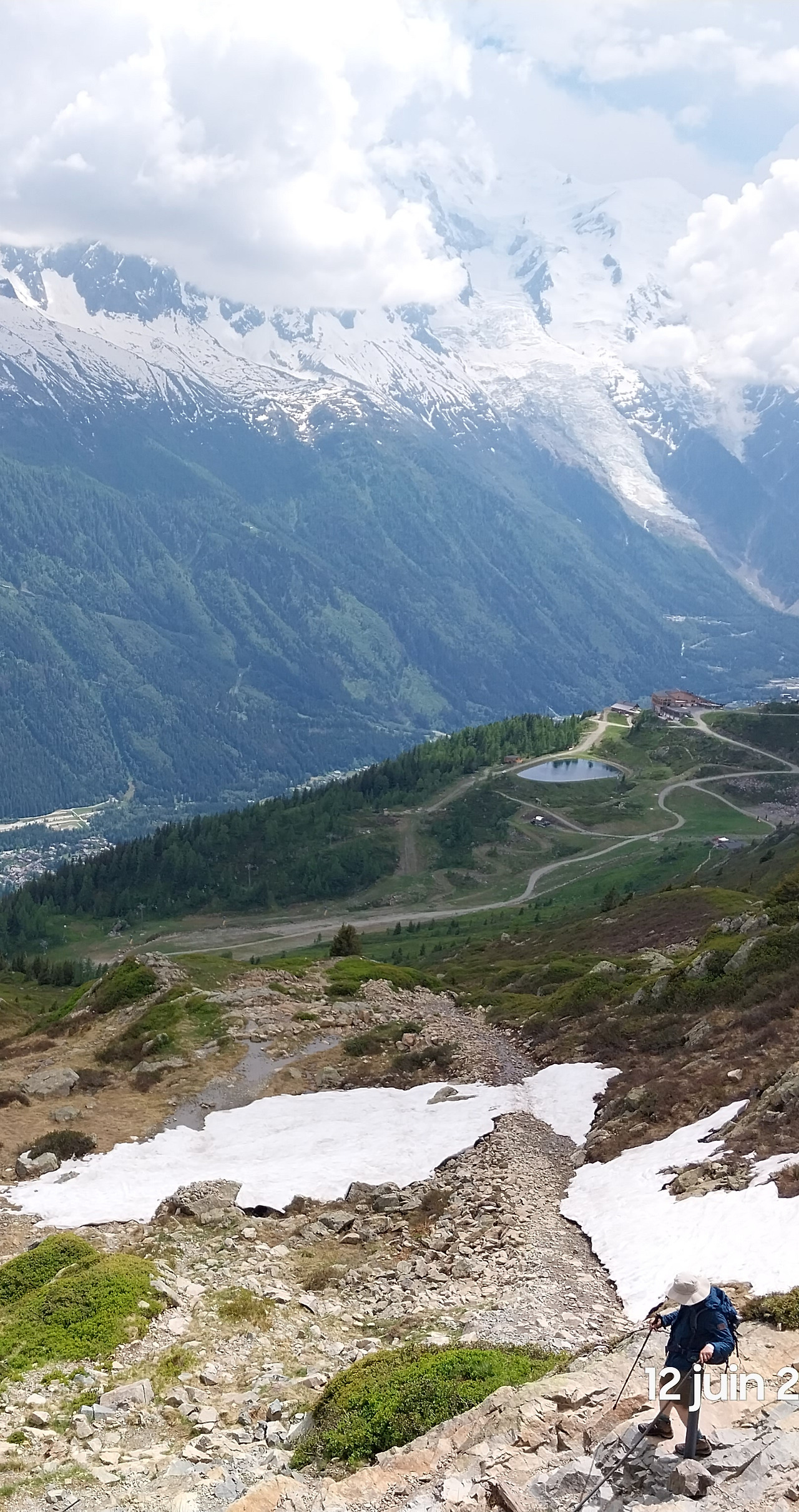 마침내 라끄블랑이다. 내가 본 인생 최고의 풍경! 흘러내린 눈 때문에 호수가 메워져 있었고, 구름 때문에 몽블랑이 보이지 않아 아쉬웠다.