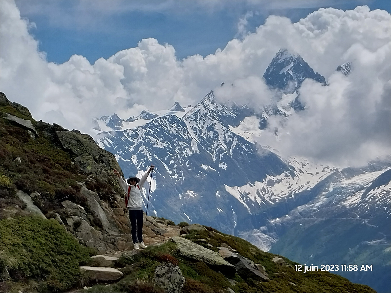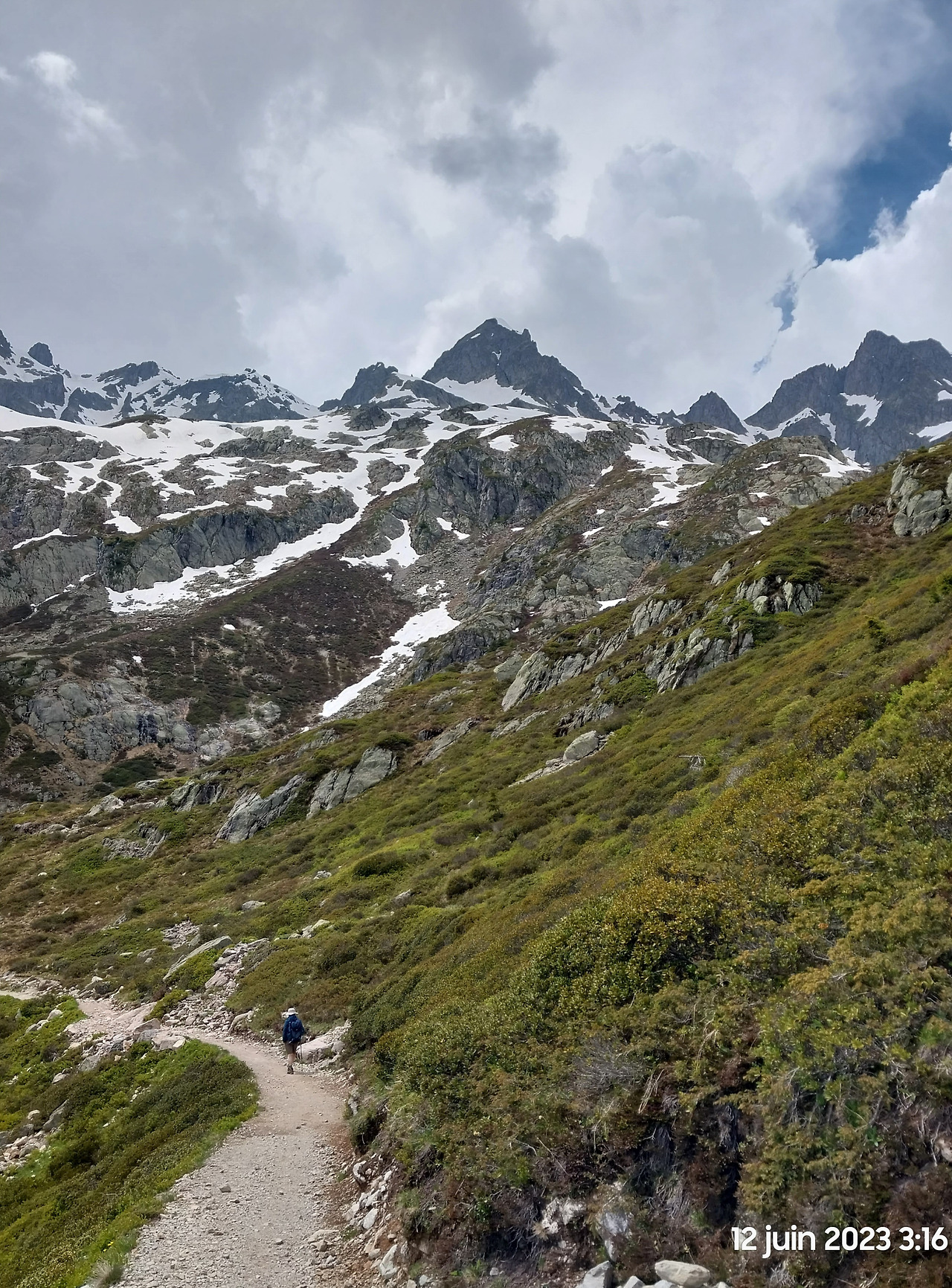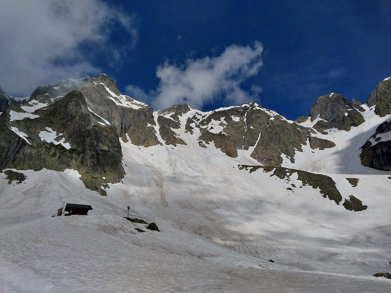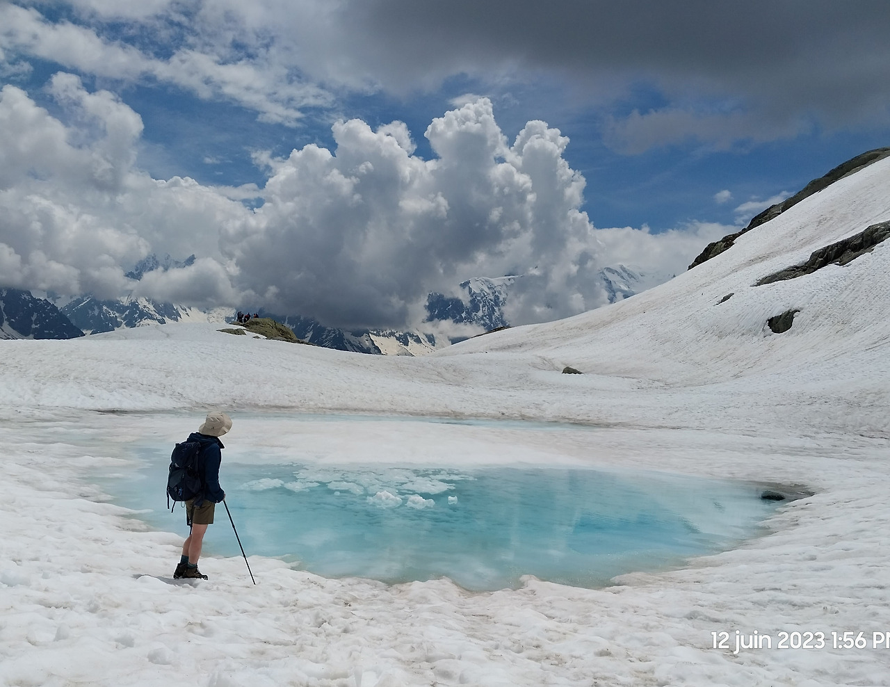 마침내 라끄블랑이다. 내가 본 인생 최고의 풍경! 흘러내린 눈 때문에 호수가 메워져 있었고, 구름 때문에 몽블랑이 보이지 않아 아쉬웠다.