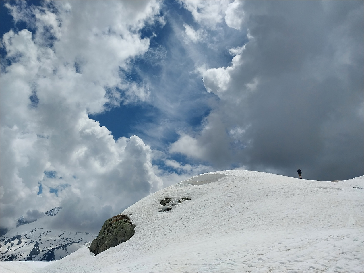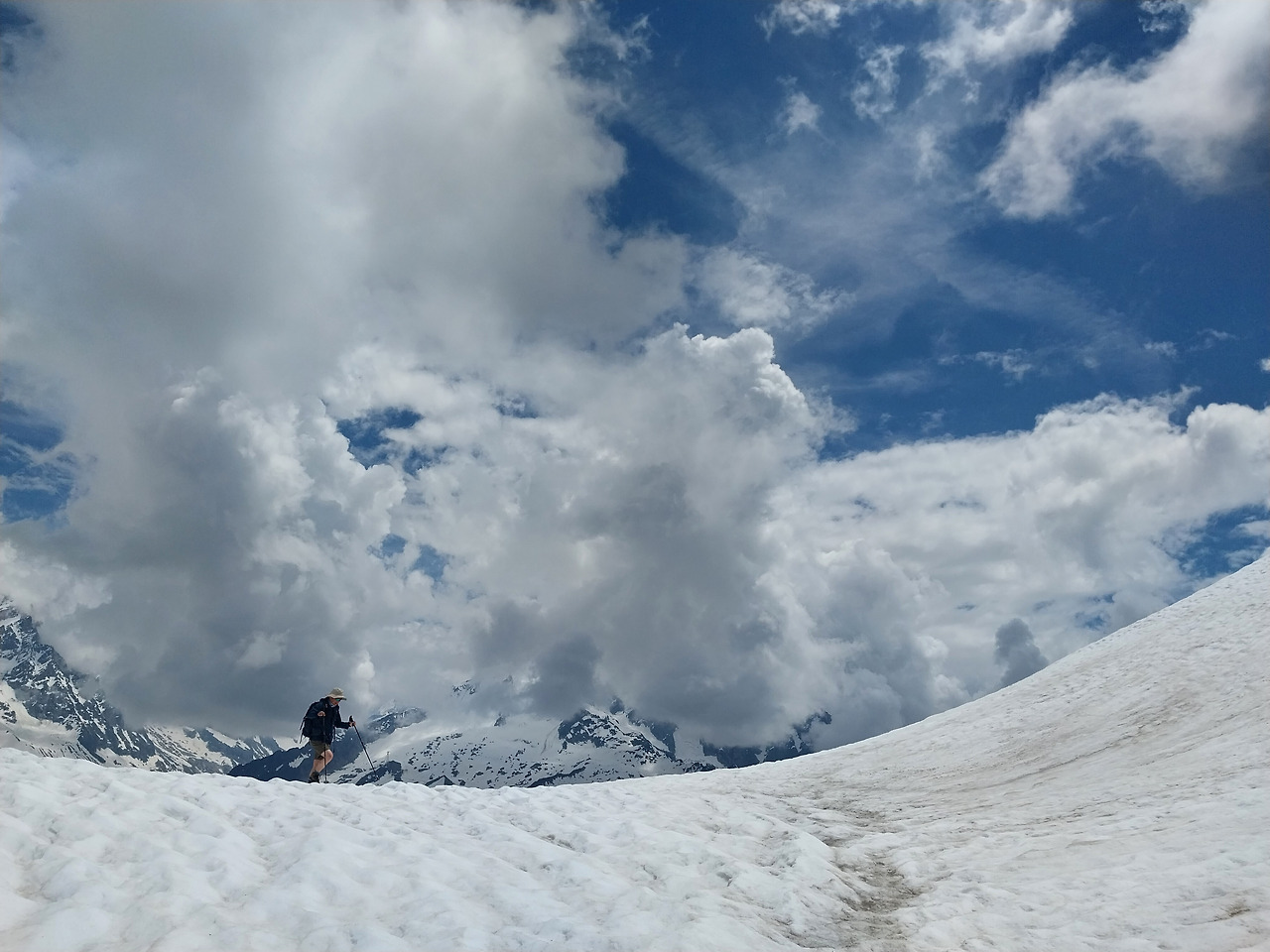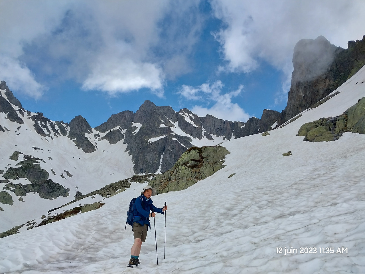 눈 위에서 길을 찾느라 몇 번이고 헤매었다. 어떤 곳은 눈의 깊이를 가늠하기 어려웠다. 유월이라 반바지 차림도 춥지 않다.