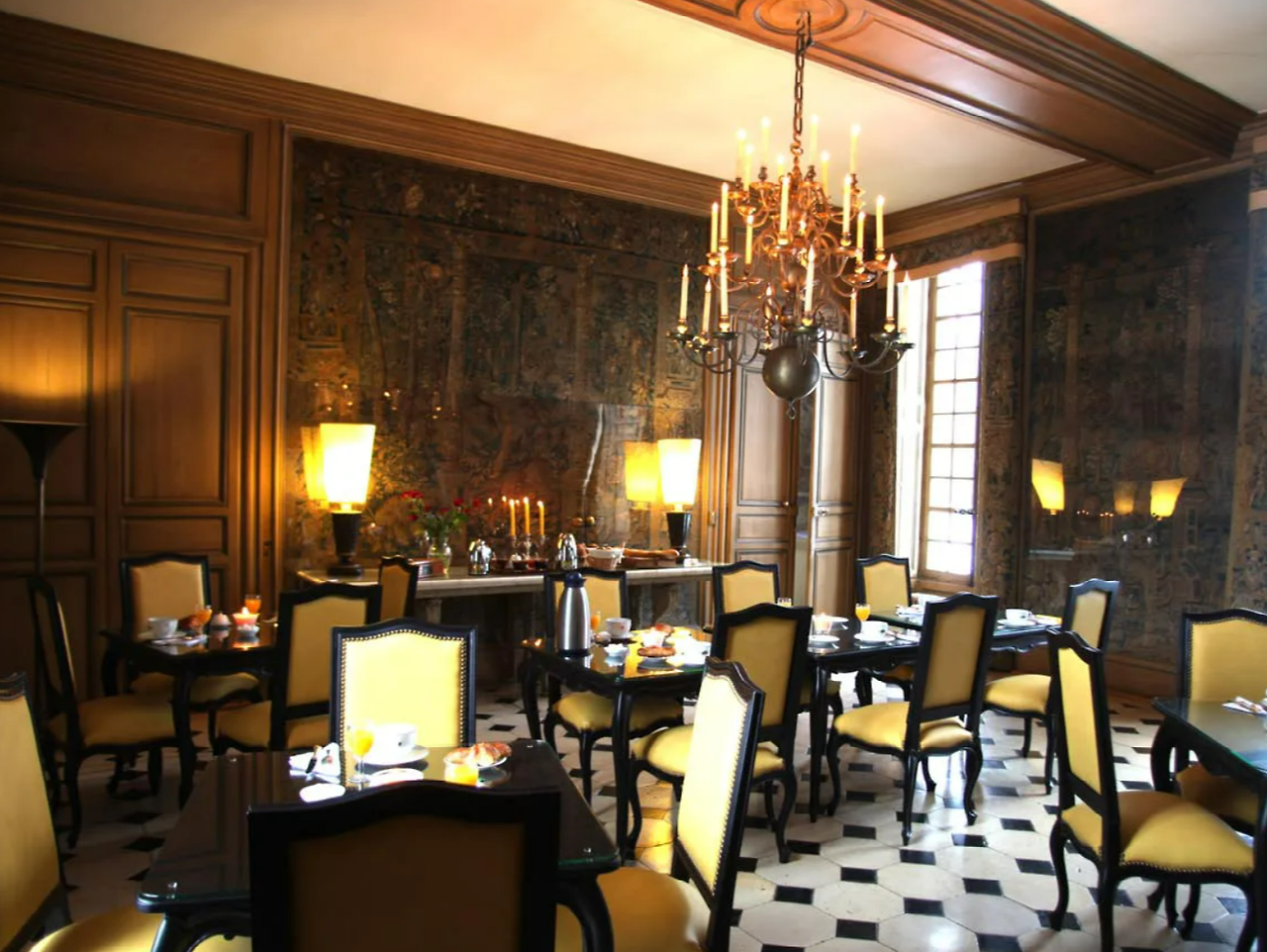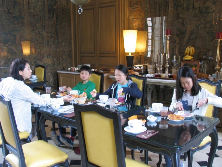 옛날 영주가 식사를 했던 식당에서 아침 뷔페를 먹을 수 있다.