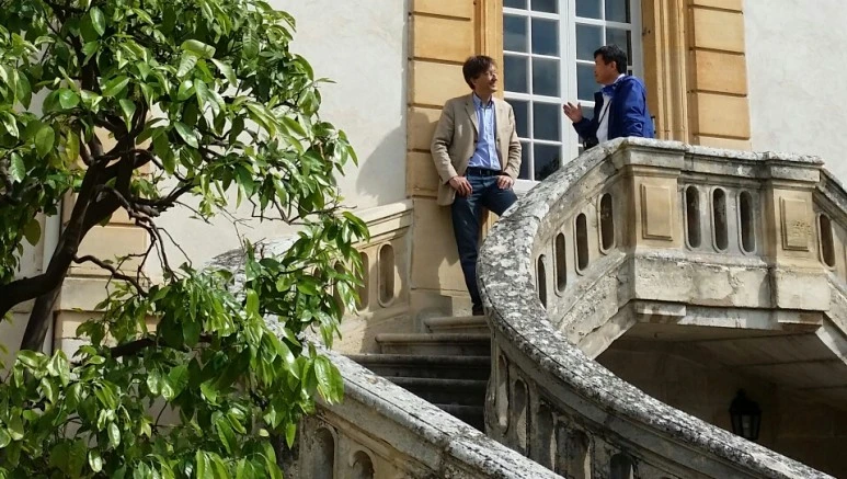 현재 성 주인인 Guy de Cordon 백작과 담소. 그의 부인이 이 성을 상속받아 호텔로 운영하고 있으나, 성을 유지보수하는 데에 드는 비용을 충당하기도 어렵다고 토로했다.