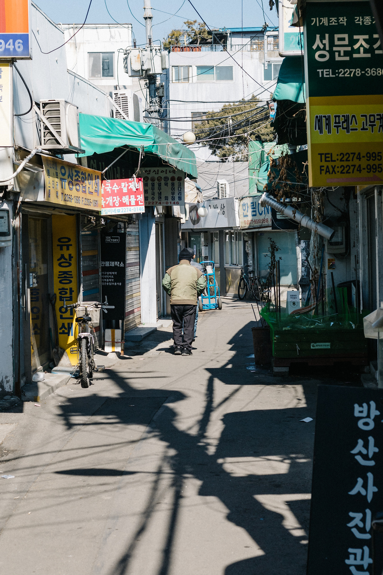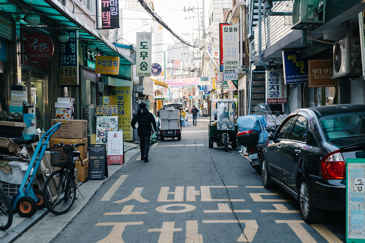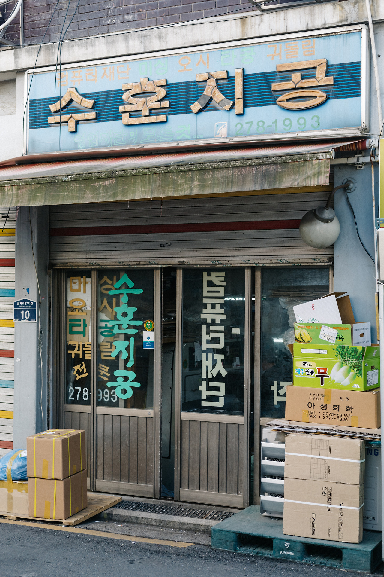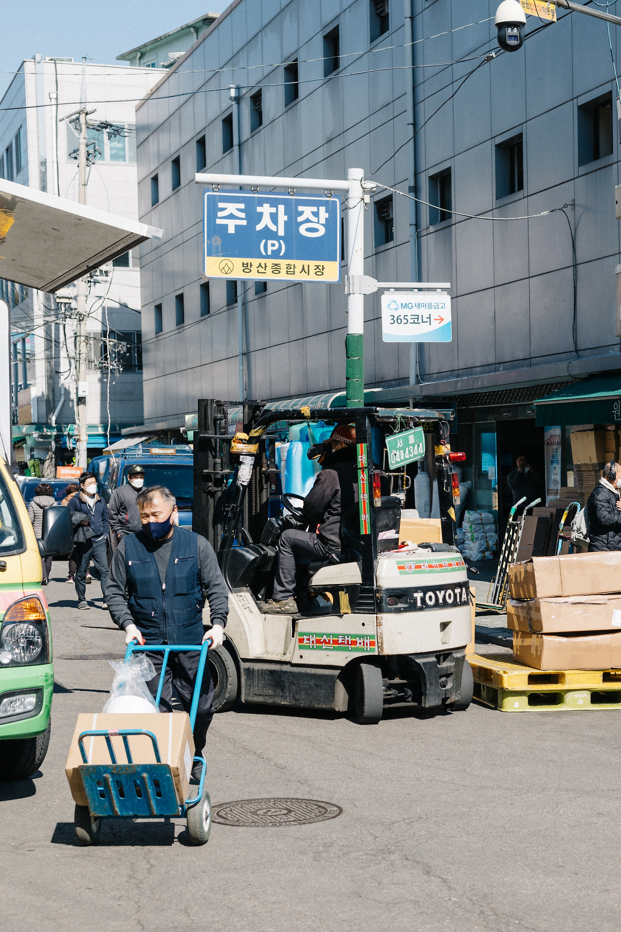 금융권 회사들의 마천루가 즐비한 을지로입구를 지나면 하늘이 눈에 띄게 넓어집니다. 을지로3가역에 가까워지면서 타일・도기 특화 거리가 시작되고, 이어서 조명 특화 거리, 금속과 인쇄 골목이 실핏줄처럼 펼쳐집니다. 을지로4가역을 지나면 남쪽으로는 건어물을 파는 중부시장, 북쪽으로는 온갖 포장재와 공방, 베이커리에서 쓰는 도구를 파는 방산시장이 자리 잡고 있지요.