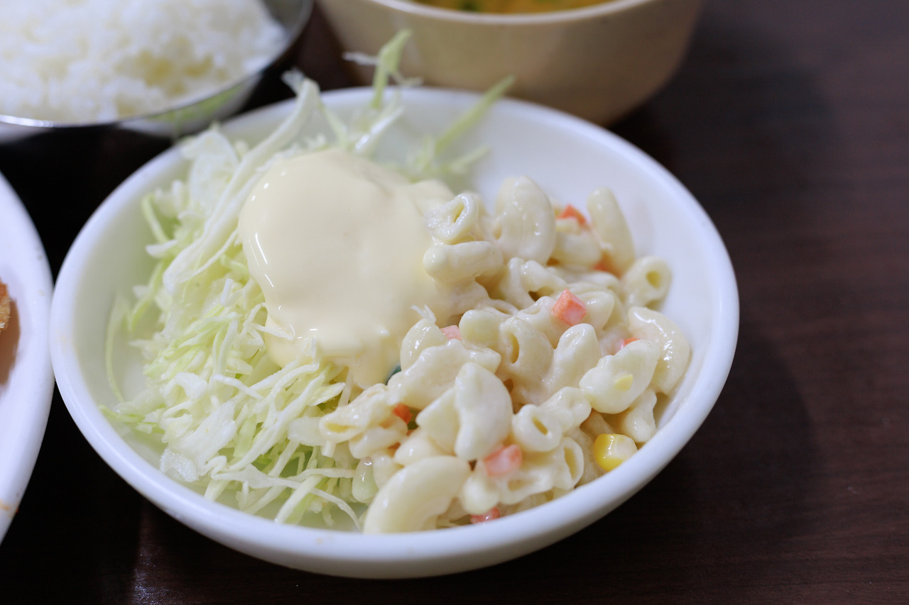 돈가스 두 점, 떡볶이 두 점, 오뎅 한 점. 규칙적으로 접시를 비웠습니다. 조금 느끼하다 싶으면 소스를 포크로 떠먹거나 깍두기를 먹었고, 조금 맵다 싶으면 마요네즈를 뿌린 양배추 샐러드와 마카로니를 먹었습니다. 밥과 콩나물국을 먹으며 분식을 먹을 때 흔히 오는 더부룩한 상태를 털고 속 전체가 정리되는 느낌도 받았고요. 돈까스 70점, 떡볶이 70점. 평균은 70점이라고 말하고 싶어도 은근히 균형 있게 갖춰진 밑반찬과 저녁까지 든든할 포만감은 70에 70을 더해 140을 말하고 싶게도 합니다.