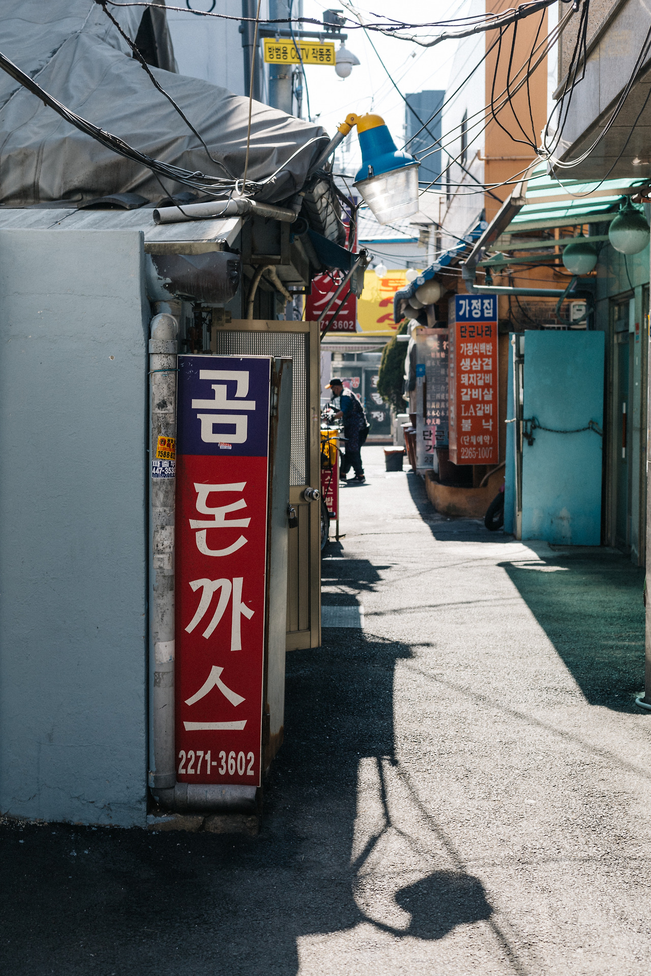식사를 마치자 당장 우래옥에 들어가시면 어울릴 것 같은 노신사 두 분이 밖에서 주춤주춤하고 계시네요. “돈까스 어때?” “손해 볼 거 없지 뭐.” 손기술만큼이나 주변머리도 없어 막 음식을 먹고 나온 사람의 한 마디를 얹어드리진 못했습니다. 한정식집, 고깃집, 칼국수집, 막국수집이 집중된 그 골목에서 곰 같은 돈가스를 먹기로 한 두 분의 식사가 저처럼 즐거우셨길 바랍니다.