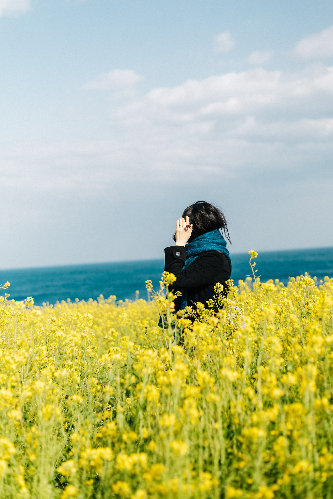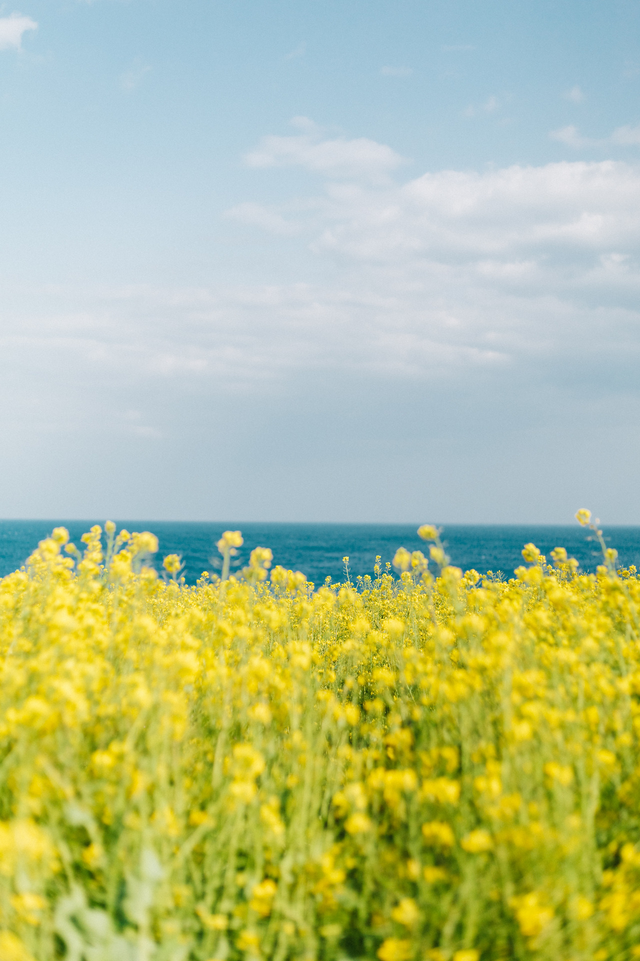 안도 타다오가 설계했다는 글라스하우스 가는 길에는 작달만 한 유채꽃밭이 있었다. 뒤편이 바다라 꽃밭이 넓지 않아도 각도를 잘 맞추면 기가 막힌 장면이 나왔다. 일을 하면서 노랑과 파랑의 배합을 어디에도 써본 적 없었다…가 아니라 첫 책 표지가 이런 배색이었구나. 어쩐지 익숙하더라니. 어떤 커플은 우리가 유채꽃밭에 들렀다가 글라스하우스에 올랐다가 도로 내려와서 주차장으로 돌아갈 때까지 꽃밭에서 나오질 않고 있었다. 메모리카드를 가득 채우려는 마음, 사실 유채꽃 위에 떠오른 푸른 바다만으로도 충분히 채울 만했을 마음.