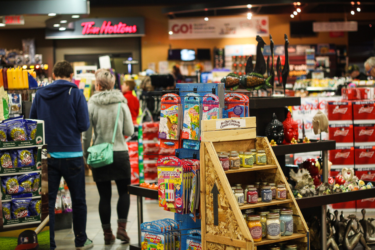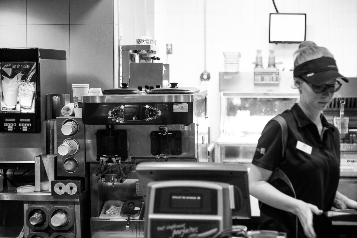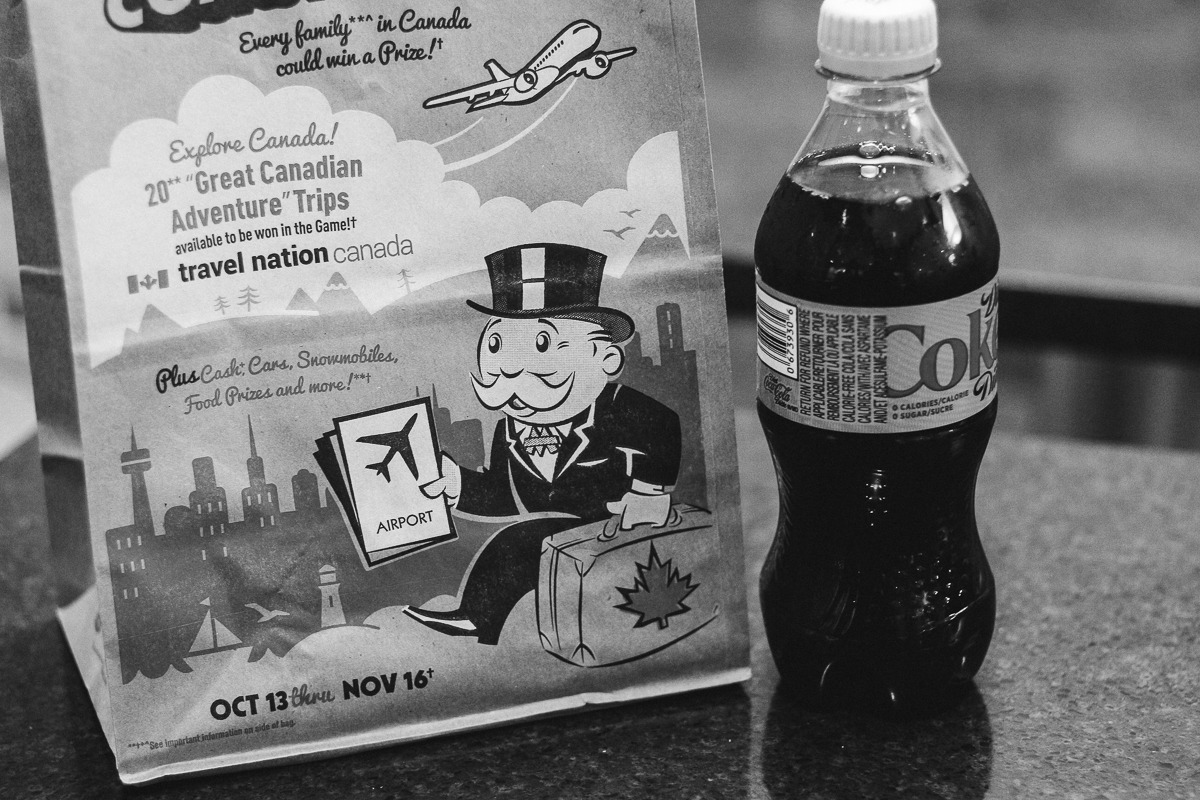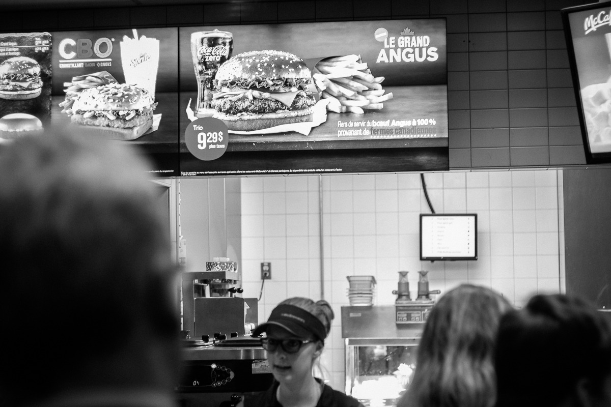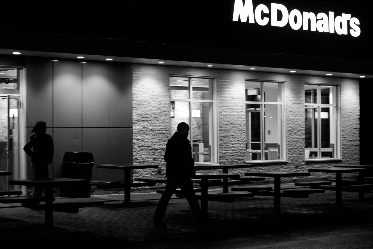 얼마 가지 않아 한국처럼 도로 한쪽에 떡하니 세워진 휴게소가 보이지 않는다는 걸 깨달았다. 대신 출구 번호와 기업의 브랜드가 병기된 표지판만 끝없이 나타날 뿐이었다. 맥도널드, A&W, 생튀베흐 익스프레스St-Huberts Express와 팀 호턴Tim hortons. 쿠쉬 타흐Couch-Tard, 에소Esso, 그리고 페트로-캐나다Petro-Canada. 도시에서라면 무심코 지나쳤을 이름들이 익명의 소도시 분기점 앞에서, 핼러윈 장식을 처마에 걸어둔 모형 같은 집 옆에서, 창백하게 푸른 우듬지 위에서 새롭게 읽혔다. 그곳에선 달착지근한 냄새가 올라오는 바닥에 사람의 그림자 대신 조명의 노란빛이 어른거리고, 의미 없이 틀어놓은 배경음악이 대화 소리를 대신하며, 부들부들 떠는 주유구의 덜그럭거림이 시계와 박자를 맞출 것 같았다.