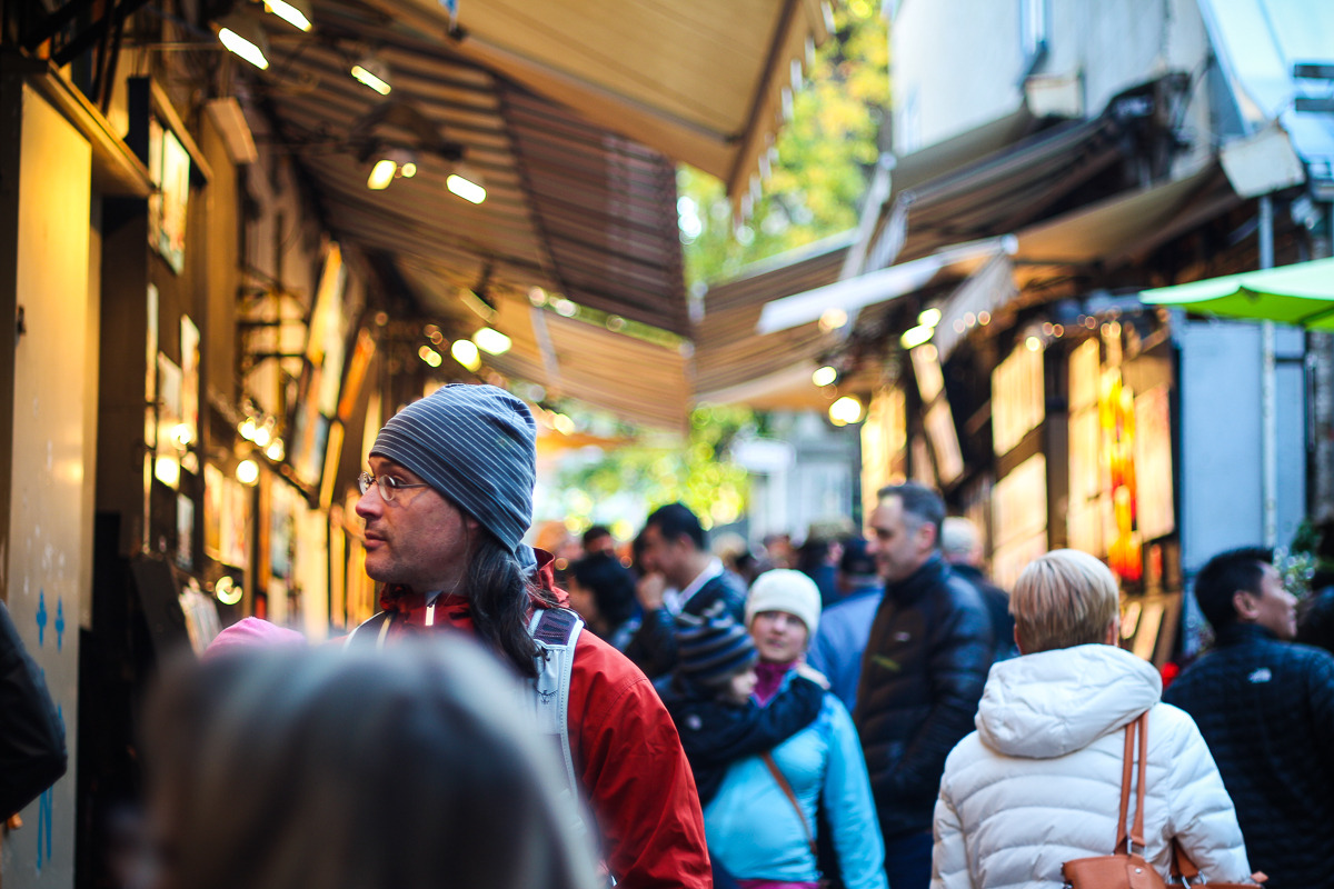 버스는 올드 퀘벡 시티, 그러니까 구시가지까지 가는 데 커브 한 번 돌지 않고 직진만 했다. 시간도 십 분밖에 걸리지 않았다. 이렇게 가까운 거리를 이렇게 복잡하게 와야 할 줄 알았다면 차라리 차를 끌고 올 걸 그랬다. 나중에 따져보니 주차비가 두 사람 버스비보다 적거나 비슷했다. 그러나 버스가 생장 가Rue Saint-Jean의 상업 지역으로 들어서자 계단이고 버스비고 잊을 수밖에 없었다. 이곳은 어디라고 꼭 집어 말할 수는 없으나 여하튼 유럽 어느 소도시에서 볼 법한 거리와 닮아 있었다. 창문이 길쭉한 벽돌 건물과 고딕 양식의 교회는 세상이 마을 회관과 교회를 중심으로 돌아가던 시절을 추억해 보자고 속삭였다. 안타깝게도 내겐 그런 기억이 없었다. 다만 질병과 적군의 총칼과 변덕스러운 지도자의 명령에 목이 달아날 위험 없이 역사의 한 장 속을 산책할 자유는 있었다.