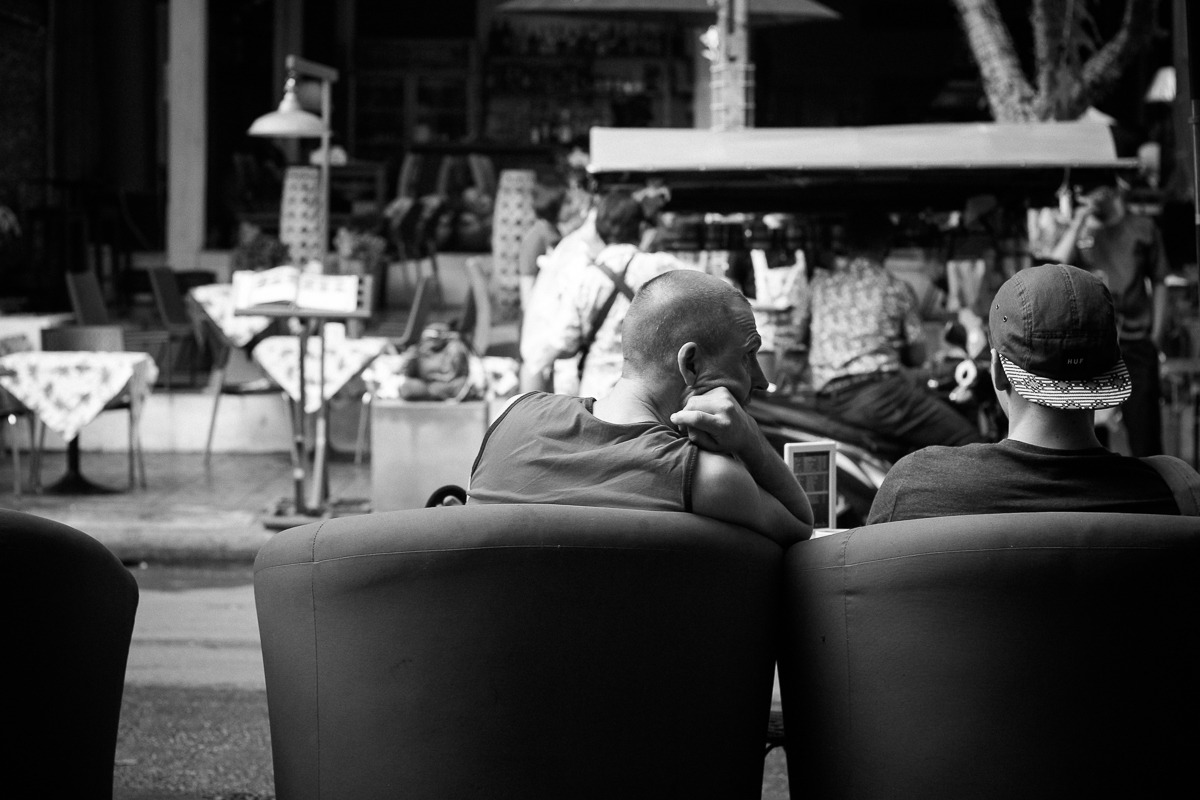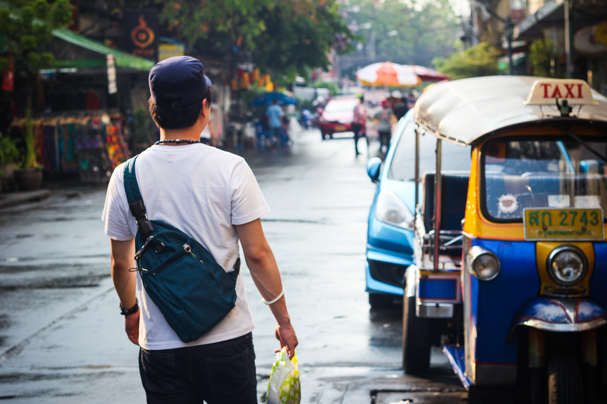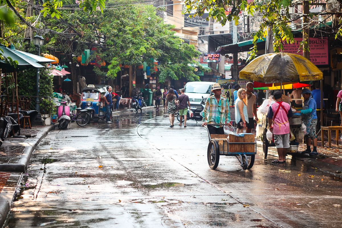 우리가 걷는 곳은 정확히 말하자면 카오산 로드의 옆길, 모든 것이 훨씬 밀집해 있는 거리였다. 거대한 나무가 아이의 머리를 쓰다듬듯 건물 위에 가지를 올려놓고, 음악은 공기 중에 떠돌던 것이 스피커를 찾아 스며드는 것처럼 바로 옆에서 요란을 떨었다. 사람들은 고향에선 노출하기 힘든 부위까지 드러내어 오후의 열기를 흡수했다. 거리를 향해 놓인 술집과 카페 의자는 책을 읽거나 지나가는 다른 여행자를 구경하거나 멍한 눈으로 사색(또는 무념)에 잠겨있는 사람으로 가득했다. 삼십 분 전만 하더라도 세상을 쓸어버릴 만큼 비가 쏟아졌는데, 지금 하늘은 언제 그랬냐는듯 시치미를 뗀다. 노란 햇살이 거리 위로 쏟아졌다. 먼지가 씻긴 대기, 순도 높은 빛을 받아 만물이 꽃처럼 도드라졌다. 너무 많은 피사체 때문에 오히려 카메라를 들지 못할 지경이었다. 무엇을 찍어야 할지 알 수 없었다. 몇 십 장을 모아도 전체를 완성할 순 없을 터였다. 이럴 땐 감각이, 외부의 자극을 받아들이고 저장하는 두뇌의 작은 부분이 촬영을 대신해야 마땅한데, 이 장면을 온전히 간직할 수 있는 질료가 내겐 없었다….