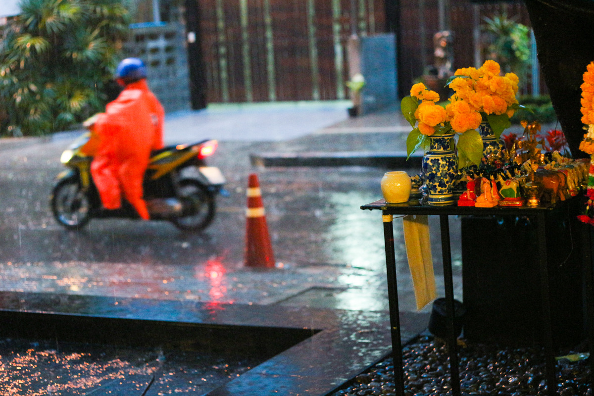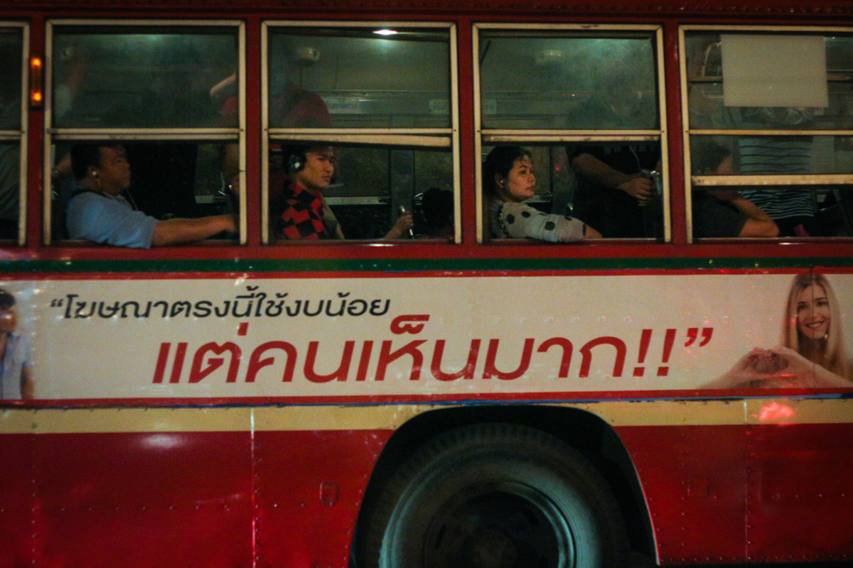 방콕엔 다양한 교통수단이 있다. 지하철(MRT)과 지상철(BTS), 시내버스, 삼륜 오토바이인 뚝뚝이, 그리고 택시다. 우리가 방콕에서 제일 처음으로 이용했고, 이후로도 즐겨 탄 건 택시였다. 익히 알려졌듯 방콕의 택시는 놀라울 정도로 저렴하다. 미터기 요금을 적용했을 경우엔 말이다. 보통 한국에서 출발한 비행기는 늦은 밤에 방콕에 도착하기 마련이다. 마땅한 대중교통이 없는 상황에서 대부분 택시를 타게 된다. 미리 알아본 바로는 공항에서 시내까지 400밧 정도라고 들었는데, 우리의 택시 아저씨는 지나치게 친절하다 싶더니 아니나 다를까 500밧을 요구했다. 한화로 만 칠천 원이 조금 안 되는 가격이었다. 공항에서 시내까지의 거리가 약 25km라는 점을 고려하면 한국에 비해선 엄청 저렴했지만, 그래도 뭔가 속은 듯한, 정확히 말하면 속아가고 있는 듯한 찜찜함을 지울 순 없었다. 허나 피곤하기도 하고 짐도 무거워 그냥 평균보다 조금 더 주고 말자는 식으로 택시에 몸을 실었다.
