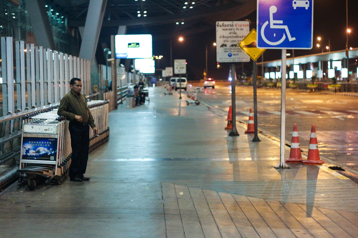 무한까지 의심해 볼 만했던 비행이 끝나고, 기진맥진한 상태로 방콕 스완나품 공항에 내렸다. 좁은 기내에서 벗어났다는 데 해방감을 느껴야 마땅했지만, 뭉쳤던 감정을 폭발시켜 채우기에 공항은 지나치게 거대했다. 내 눈이 침침해서 그런지 실내는 어둡고 칙칙한 인상이었다. 에이프런과 활주로를 면한 통유리로 한밤의 어둠이 스며들고 있었다. 텅 빈 대합실을 청소하는 이들은 누군가의 그림자처럼 윤곽이 모호했고, 매끈거리는 쥐색 바닥 위로 노란색과 하늘색 조명이 아른거렸다. 그 빛들은 입국 심사대나 수하물 수취소, 환승 터미널 따위를 가리키고 있었다. 영어보다 우위에 있는 태국어가 만만치 않은 이질감으로 사인보드를 올려다보게 했다.