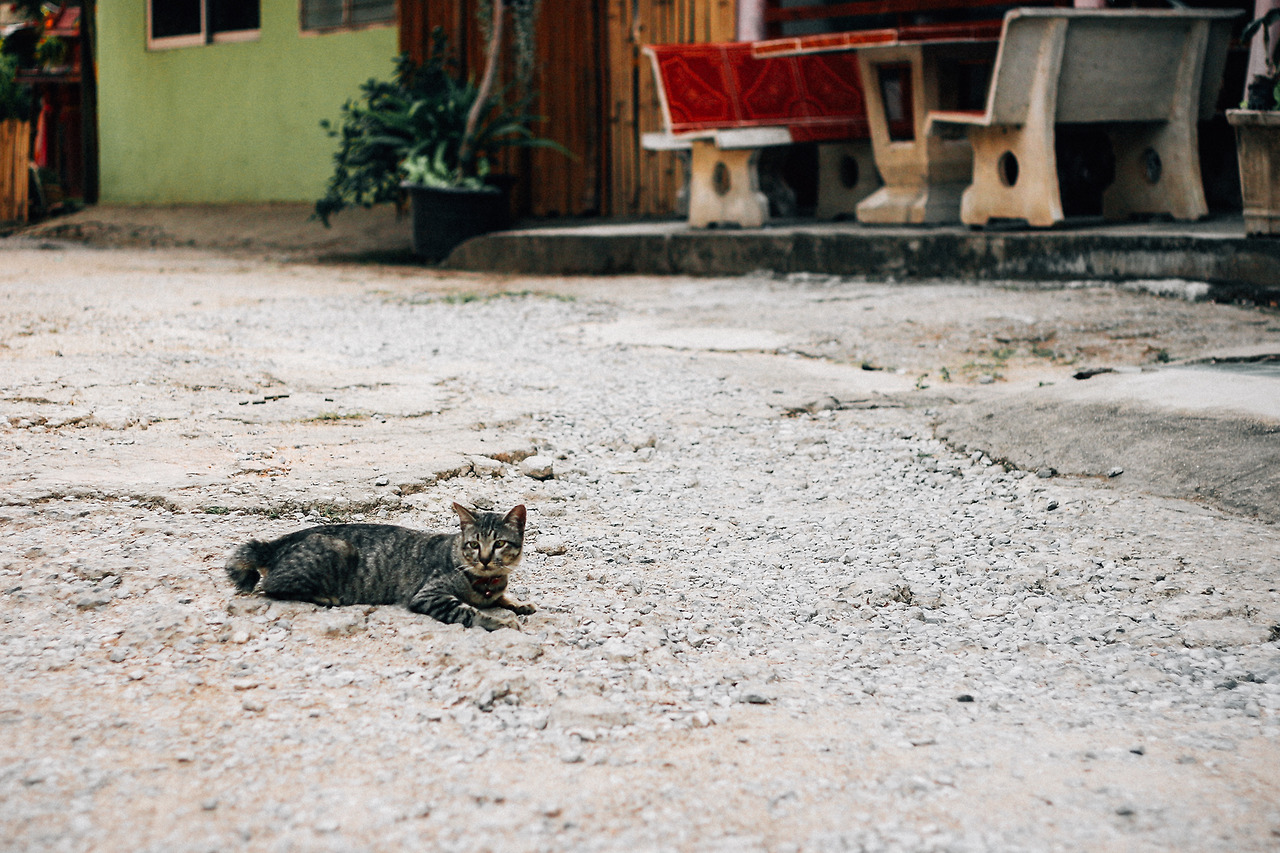 사람보다 방이 많은 것 같은 한적한 숙소에 어둠이 내려앉았다. 그건 차라리 이 땅에서 조용히, 천천히, 겹겹이 쌓여온 세월이었다. 빈 맥주병이 늘어났다. 태국 가정식으로 삶아 낸 생선도 식탁에 올랐다. 현지인의 저녁 식사에 초대받은 기분이었다. 숙소에 기거하는 고양이 몇 마리도 어느새 경계심을 풀고 내 다리 사이를 돌아다녔다. 부드러운 털이 스칠 때마다 화들짝 놀라는 것은 오히려 내 쪽이었다. 고양이 한 마리는 내처 테이블 위로 올라와 우리가 먹다 남긴 생선에 코를 박았다. 왜 고양이에게 생선을 맡겨서는 안 되는지, 깨끗하게 살이 발라진 생선 뼈를 보고 알았다. 대니는 그 사이에 오토바이를 타고 집으로 돌아갔다가 커다란 하얀 개를 뒷좌석에 앉히고 돌아왔다.