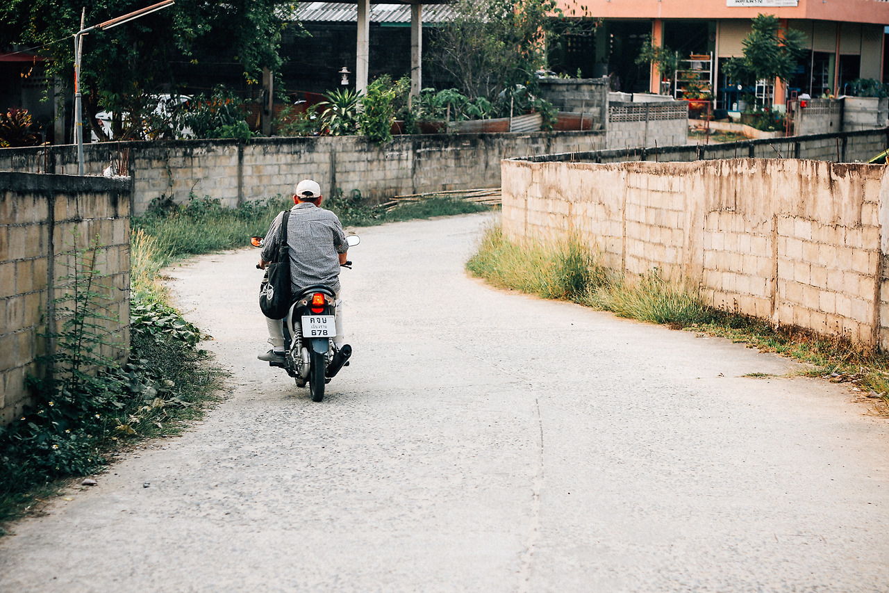 태국의 북서쪽 국경을 향해 세 시간 넘게 달렸다. 풍경이 극적으로 바뀌지는 않았으나 점점 현대 문명의 축복(또는 지배)에서 멀어진다는 인상을 받기에는 충분했다. 병충해와 홍수를 피하기 위해 티크 같은 나무로 축대를 세워 땅보다 높이 집을 지은 태국 전통가옥이 그러했다. 주차 공간을 마련하기 위해 지층에 기둥만 세운 불안한 빌라보다는 이곳의 전통가옥이 더 안정적으로 보였다.