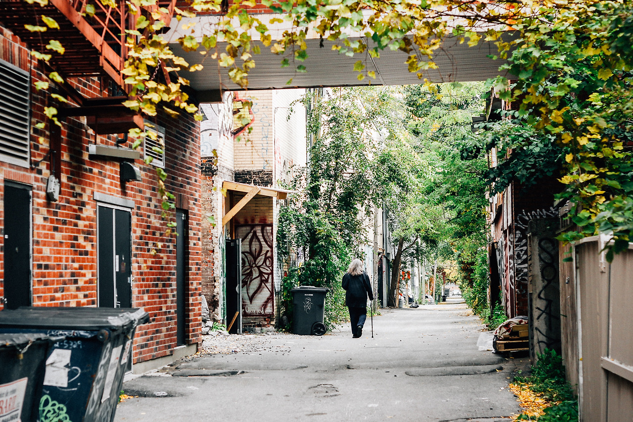 방향을 바꿀 수도 있었다. 집에 들렀다 나온 이후로 계산하자면 달려온 거리가 아까울 만큼 많이 온 것도 아니었다. 하지만 언덕을 따라 이어진 생 튀베흐 가Rue St. Hubert는 40리터짜리 배낭을 메고 있든 40파운드짜리 자전거를 끌고 있든 몇 분의 고생쯤은 잊으라고 요구하고 있었다. 나는 몬트리올에서 지내는 내내 이 도시에 관한 글(바로 이 글)을 쓰게 되리라 생각했다. 그리고 여기 생 튀베흐 가의 언덕 한 단락에서 그 생각이 마침내 진전을 보였다. 바로 이 동네처럼 보이는, 읽히는, 쓰인 글이어야 하겠다고, 나는 숨을 고르며 확신했다.
