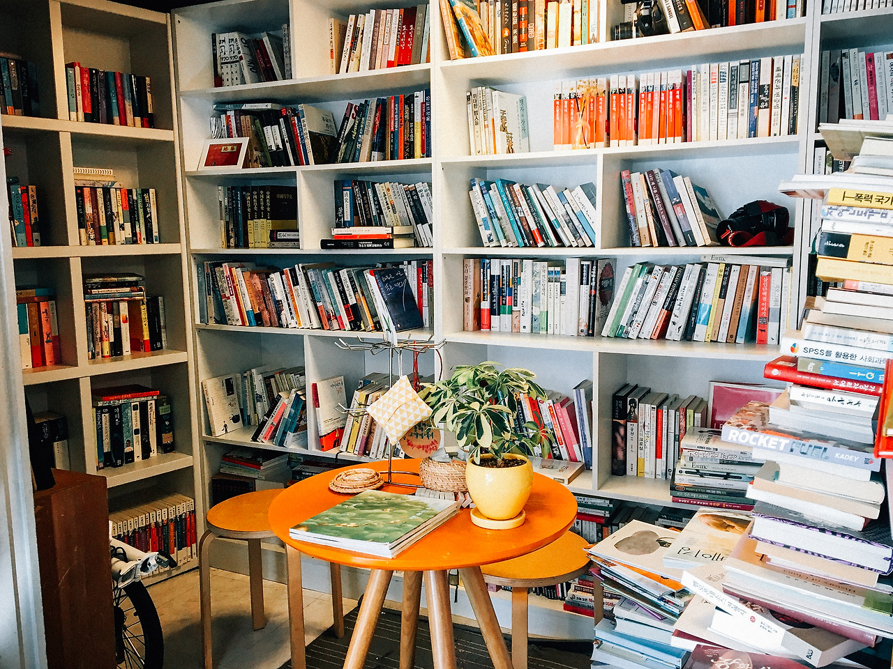 단순히 작은 서점, 동네 책방에서 느껴지는 야무지면서 감상적이고, 동시에 나름의 사연이 있을 법한 신비로운 분위기에 홀린 것은 아니다. 접점이 있는 사람이 만든 공간이기에 나는 이 서점, 서재가 편안했다. 스피커에서는 인디 위주의 부드러운 음악이 흐르고 있었고, 남서쪽으로 난 큰 창으로 정오를 지난 햇살이 사정없이 쏟아져 들어오고 있었다. 새 책이 더 많아 시큰달큰한 책 냄새는 나지 않았지만, 어딜 보아도 눈에 들어오는 책등과 책면이 내가 중요한 가치로 에워싸졌다는 안정감을 전해주었다. 그건 신식 아파트 단지에 둘러싸이는 것과는 전혀 다른 감정이었다. 서점이 변화로부터 책을 지키고, 책이 우리를 지켜주고 있었다.