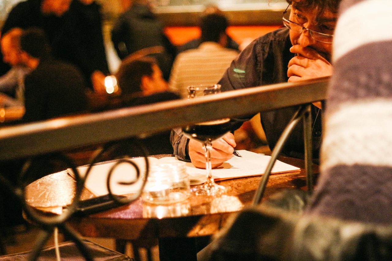 남자가 고개를 들었다. 그는 펜을 내려놓고 맥주를 마저 비웠다. 그게 언제 끝나나 계속 궁금했었다. 그가 두 잔째(또는 세 잔째 – 그는 우리보다 먼저 와 있었다)의 맥주를 주문할까? 손을 든다. 직원에게 계산을 하겠다고 말한다. 이상하게 안심이 됐다. 모험은 어떻게 되었을까. 문장이 백지 위에서 용케 살아남았을까? 하긴 그렇게 쉽게 끝날 여정이 아니다. ‘하프 라이프’를 마시며 인생의 절반을 걸어야 하는 일에 관해 생각한다. 하느님 맙소사, 나는 네 번째 맥주는 무엇을 마실까 결정하는 것도 어렵다는 걸 깨닫는다. 판돈이 떨어지기 전에 뭐라도 결판을 내야 할 텐데.