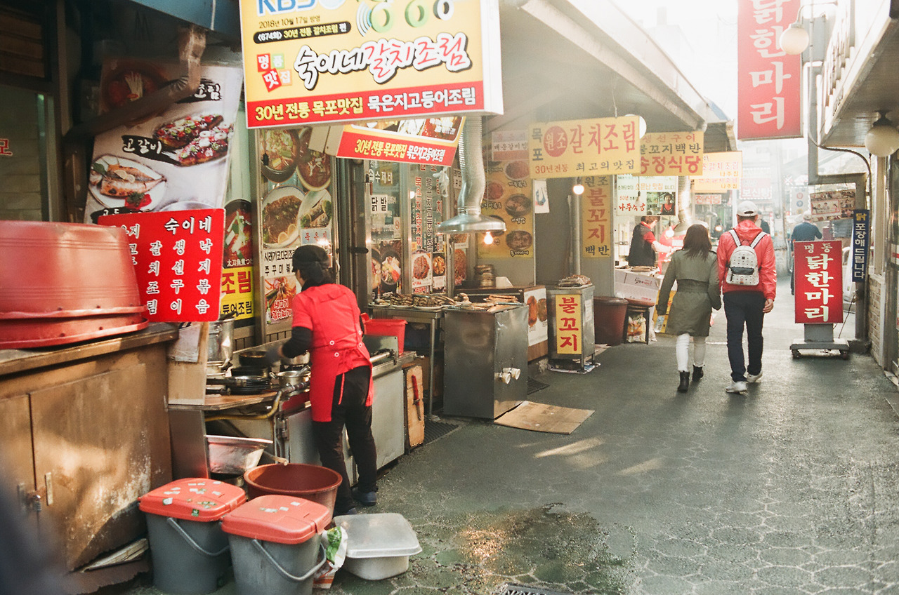 여정의 중간쯤이었다. 서점과 서점 사이에서 맛과 분위기로 이름난 식당과 카페를 꼬박꼬박 찾아가던 동력이 무뎌지는 반환점. 아내도 남편의 책이 어떤 쓸모를 만들어내진 못하겠다는 현실을 깨달았고 그래서 될 대로 되라는 심정이었는지는 모르겠지만, 실은 우리 둘 다 지도 앱 평점이나 블로그 리뷰로는 가질 수 없는 확신을 느끼고 있었다. 거리에서 눈과 발에만 의지해 밥집을 찾다 보면, 그게 역사든 내공이든 간에 몇 사람 잘 먹이는 일 정도 눈 감고도 해낼 수 있는 주인의 그림자가 엿보이는 식당이 있다. 그건 벽에 걸린 간판, 창문으로 드러나는 실내의 조도, 가게 바깥에 내어놓은 물건, 벽에 발린 페인트나 손잡이에 남아 있는 세월의 흔적 따위로 가늠되는 일이다.