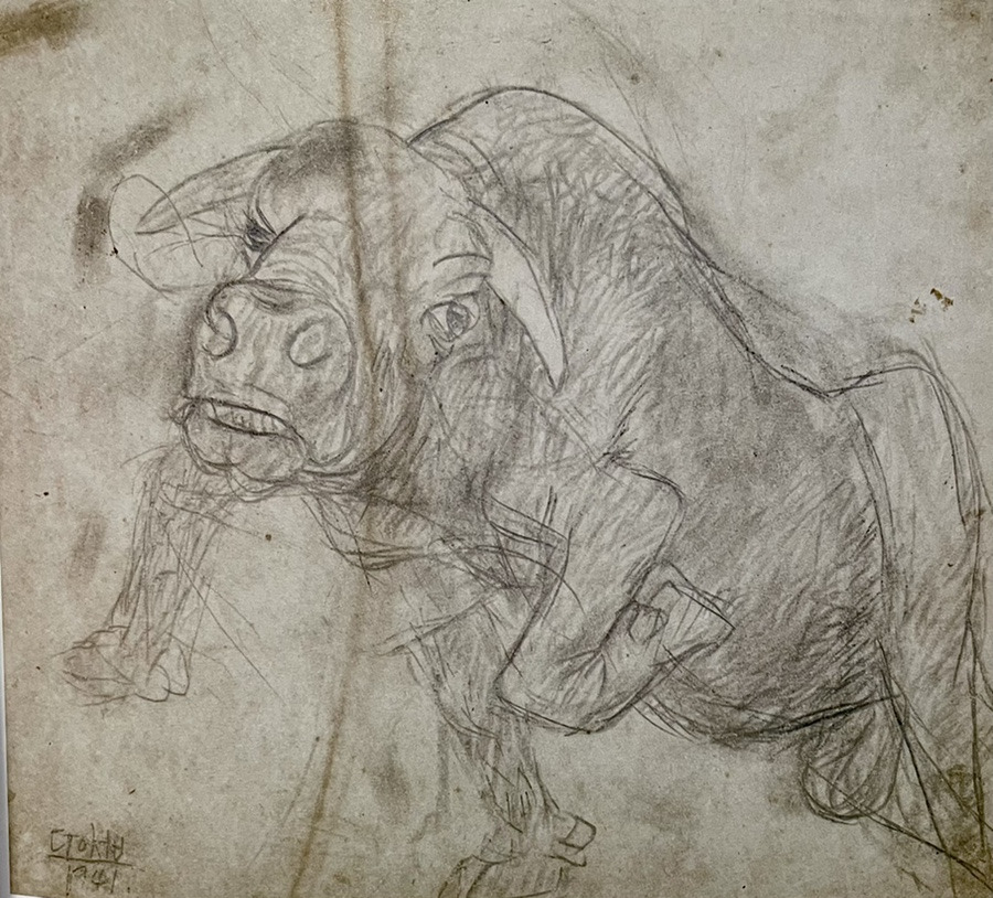 1955년 미국문화원장 맥타가트 박사가 이중섭의 황소를 칭찬하며 마치 스페인 투우같이 무섭다고 하니 이중섭이 ‘뭐라고 투우라고? 내가 그린 소는 그런 소가 아니고 착하고 고생하는 소 한국의 소란 말이우다!’라고 하고, 여관방에 돌아가 분한 마음에 엉엉 울었다고 합니다. 이중섭의 소는 그냥 동물이 아니라 한국의 얼과 이중섭 본인이 투영된 존재였던 것 같습니다. 이후 맥타가트 박사가 그림을 사고 싶다고 했지만 중섭은 팔지 않겠다고 하였고, 결국 다른 친구의 이름으로 10점의 그림을 사갔다는 일화가 있습니다. 중섭의 첫 미국진출이었죠. 맥타가트는 이후에 뉴욕 근대미술관(MoMA)에 기증의사를 표명하였고, 심의절차를 거쳐 MoMA에 소장하기로 했다고 합니다.