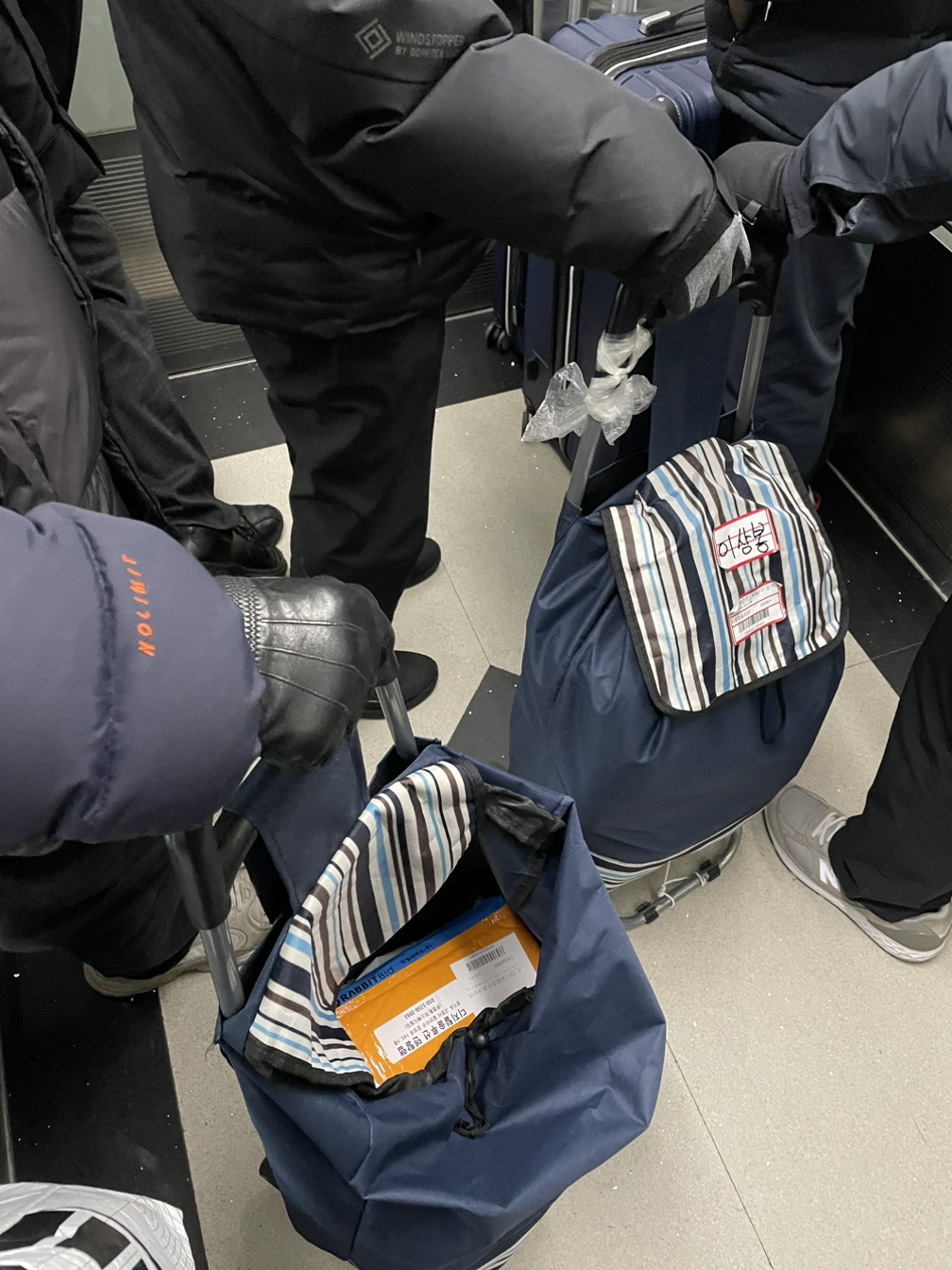 그리고 파란불이 반짝, 할아버지들은 직진순재마냥 빠르게 움직이셨고 귀동냥은 짧게 끝났다. 24개, 미아사거리. 가방 안에 들어있는 무언가가 24개라는 소리일까? 그걸 들고 미아사거리로 가야 한다는 뜻일까? ‘많네’라고 말씀하시는 할아버지의 눈빛에서 묘한 부러움이 느껴졌다. 대체 이 할아버지들은 무엇을 들고 어디로 가는 것일까. 장바구니를 끄는 어르신들에 대한 호기심 덕에 아침 출근길에는 핸드폰을 주머니에 넣고 귀를 쫑긋 세우고 눈치를 살피게 되었다. 며칠 뒤에는 어떤 할머니도 비슷한 시장바구니를 들고 잰걸음으로 종종 지하철로 향하고 계셨다. 가방이 조금 열려있는 것처럼 보여 할머니 곁에 바짝 붙어 걸어가며 가방 속을 들여다봤다. 물건들에 배달주소가 찍혀있는 것처럼 보였다. 노인들이 이렇게 새벽같이 서울역에서 물건을 받아 배달해야 하는 것이 무엇일지 추측도 안되고 궁금증이 완벽하게 풀리지는 않았지만 어찌 됐든 그들은 ‘일’을 하고 계시는 듯하다. 아침 일찍 일어나서 출근하는 나와 같이.