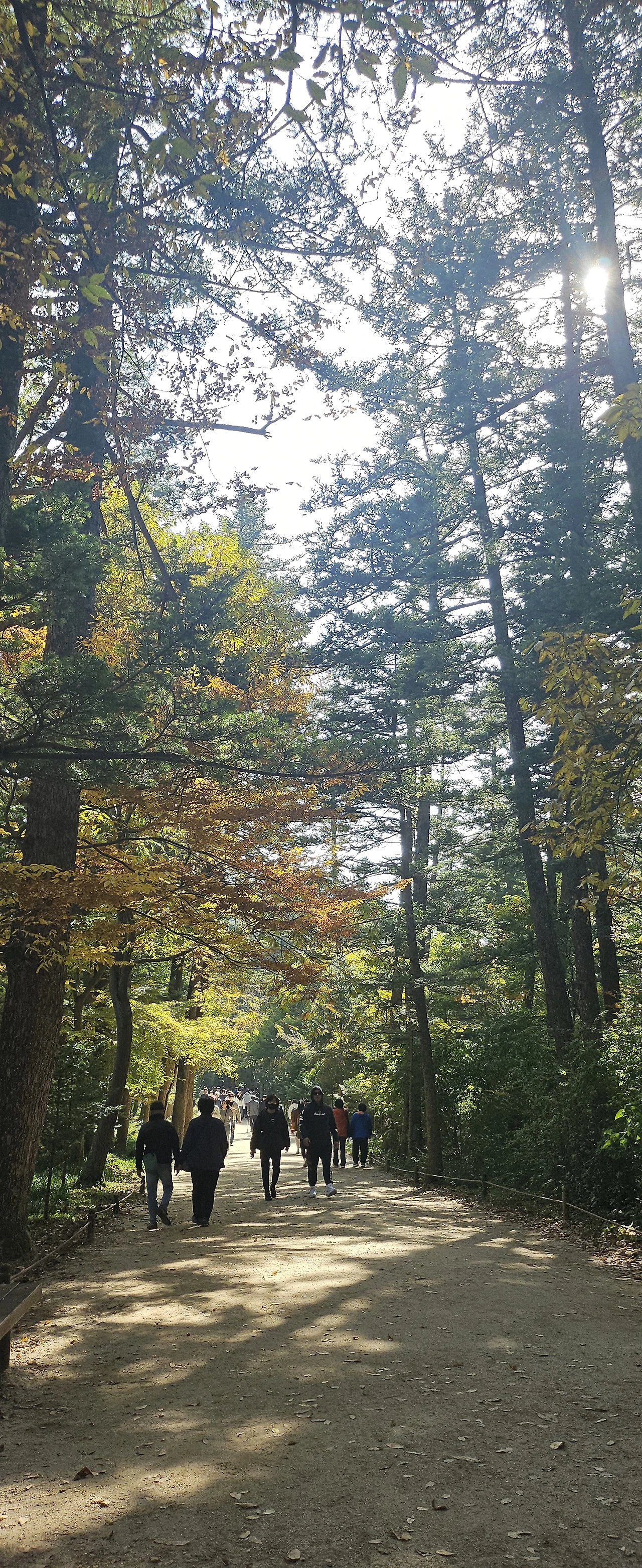 한 아름으로 다 안을 수 없는 웅장한 전나무 아래 삼삼오오 짝지어 온 가족들, 친구들이 거닐고 있었다. 정다운 모습을 바라보는 우리의 마음도 단풍처럼 곱게 물들어 갔다.