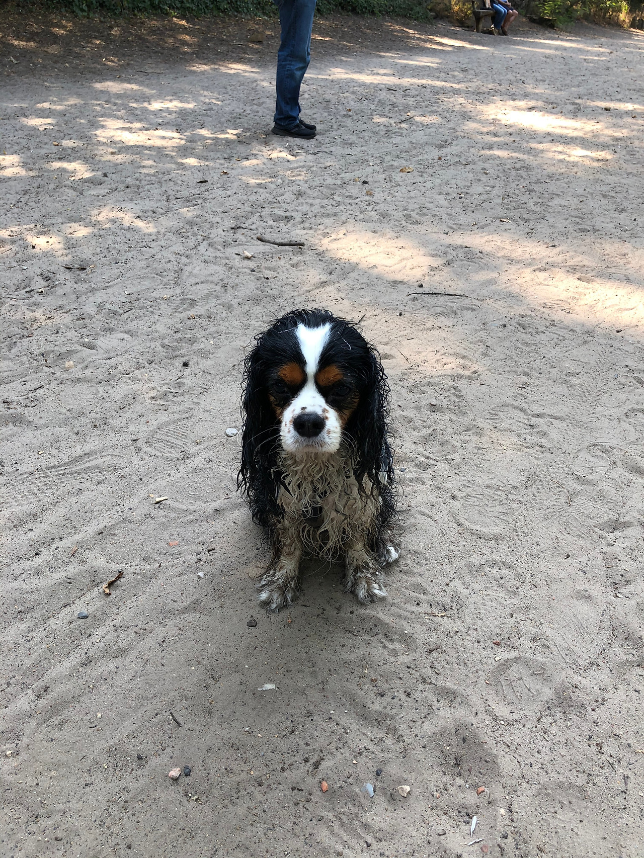 작년 여름 쇼코는 베를린 그루네발트(Grunewald)에 있는 개 전용 호숫가에서 처음 제대로 수영을 했다. 물속에서 쇼코의 세 가지 색 털이 우아하게 넘실거렸다. 그런데 물 밖으로 나오니 말 그대로 꼬질이... 작은 수건을 챙겨 오긴 했으나 털 부자라 별 도움도 안 되고 남편이랑 딸이랑 셋이서 차로 걸어가면서 저 꼬질이 어쩌냐, 물에 젖으니까 정말 웃기게 생겼네, 차는 어쩌냐, 가자마자 씻겨야 한다 등등 온갖 토론을 했다. Grunewald에서 우리 집까지는 차로 약 15분 정도 걸리는데 오는 동안 우린 좁은 차 안에서 개 비린내 + 물비린내의 환상적인 컬래버레이션을 경험해야만 했다. 그런데 집에 와서 씻기려고 보니 털은 다 말라있고 붙어있던 흙도 거의 다 떨어졌네?! 빗질을 해주니 그나마 붙어있던 흙도 다 떨어지고 다시 깨끗해졌다?! 냄새도 별로 안 나고 신기하다! 오! 안 그래도 피곤한데 다음에 씻기자.
