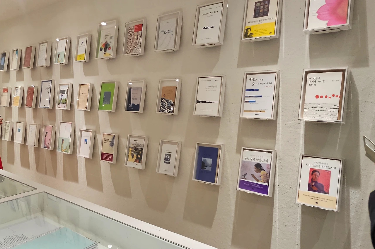 1층은 북카페처럼 책도 읽고 차도 마시는 공간이었다. 얼마나 부지런히 책을 쓰셨는지 한 면을 다 채웠다. 어른한테 이렇게 표현하는 것이 죄송스럽지만 정호승 시인은 깎아놓은 밤톨 같다는 생각이 들었다.
