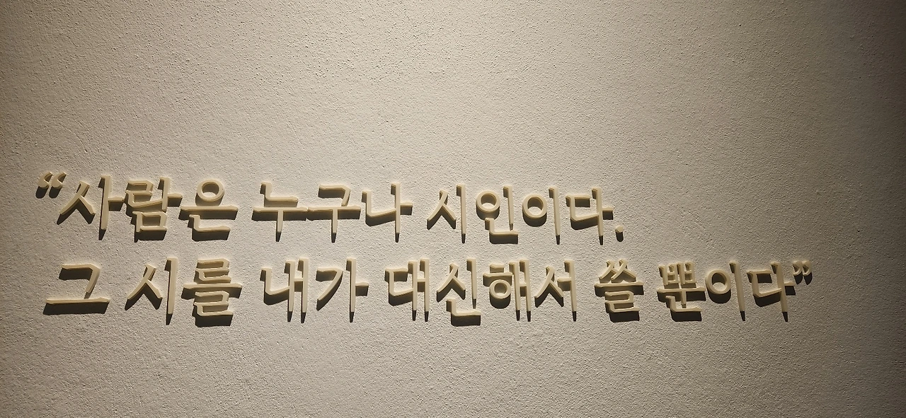 1층은 북카페처럼 책도 읽고 차도 마시는 공간이었다. 얼마나 부지런히 책을 쓰셨는지 한 면을 다 채웠다. 어른한테 이렇게 표현하는 것이 죄송스럽지만 정호승 시인은 깎아놓은 밤톨 같다는 생각이 들었다.
