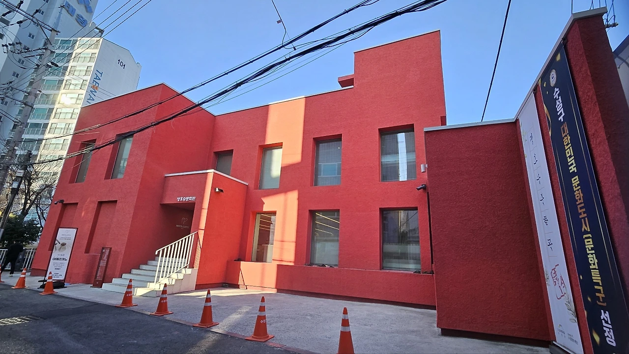 한 시간반을 달려 도착한 곳은 대구에 위치한 빨간 건물이다. 정호승 문학관이다.
