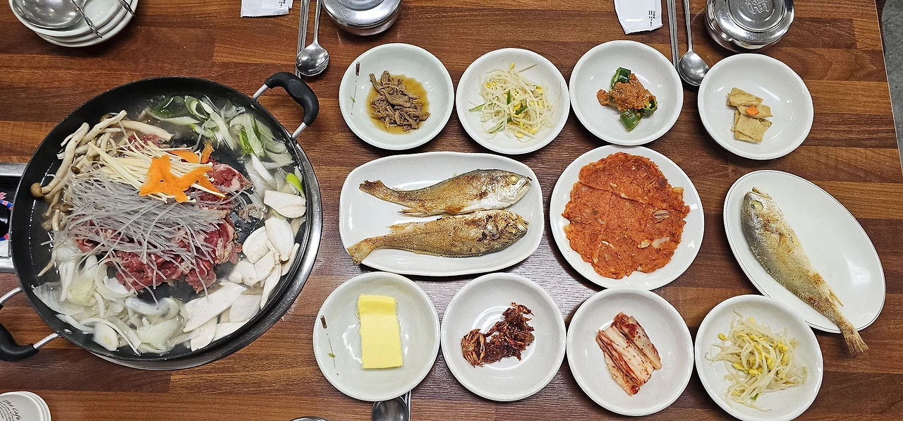 버스를 타고 한 시간 반쯤 돌려 경주에 도착했다. 금강산도 식후경이라고 우리들은 미리 준비된 식당에 가서 점심밥을 먹었다. 점심 메뉴가 불고기전골이었다.