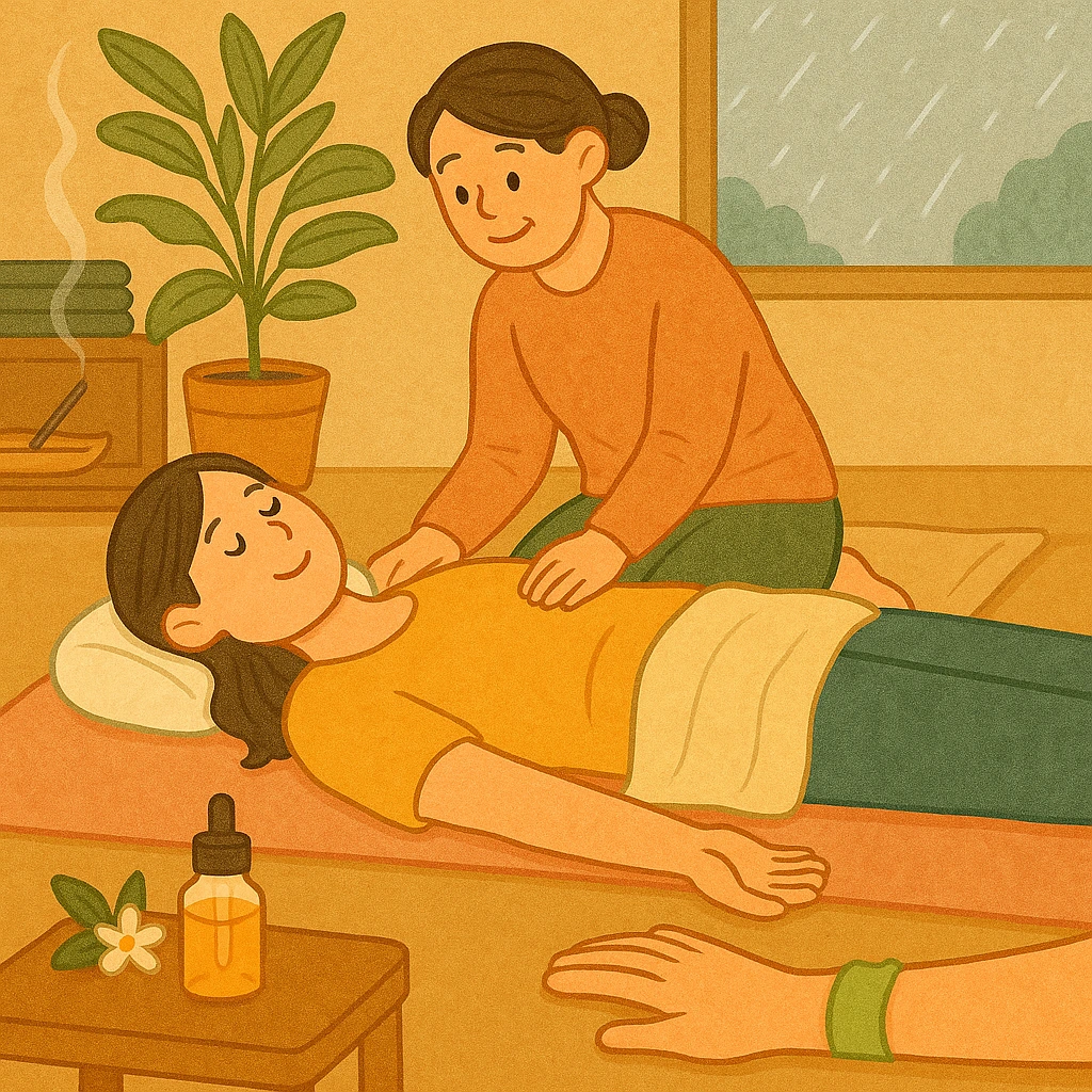선생님은 조용히 수련생들의 손목에 아로마 오일을 한 방울씩 뿌려준다. 양 손목을 부드럽게 문질러 코에 박고 박하향 비슷한 그 향을 깊게 들이쉰다.