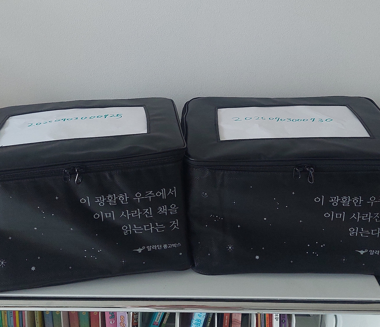 알라딘 전용 박스를 신청하면 택배 배송으로 박스가 집 앞에 도착합니다. 1박스당 20권의 도서를 담아 문 앞에 두면 택배 기사님이 가져가주죠. 바코드를 찍어 20권의 매입가를 직접 확인할 수도 있고, 이것도 귀찮다면 그냥 20권을 담아 박스째 보내면 알라딘에서 정산을 해줍니다.